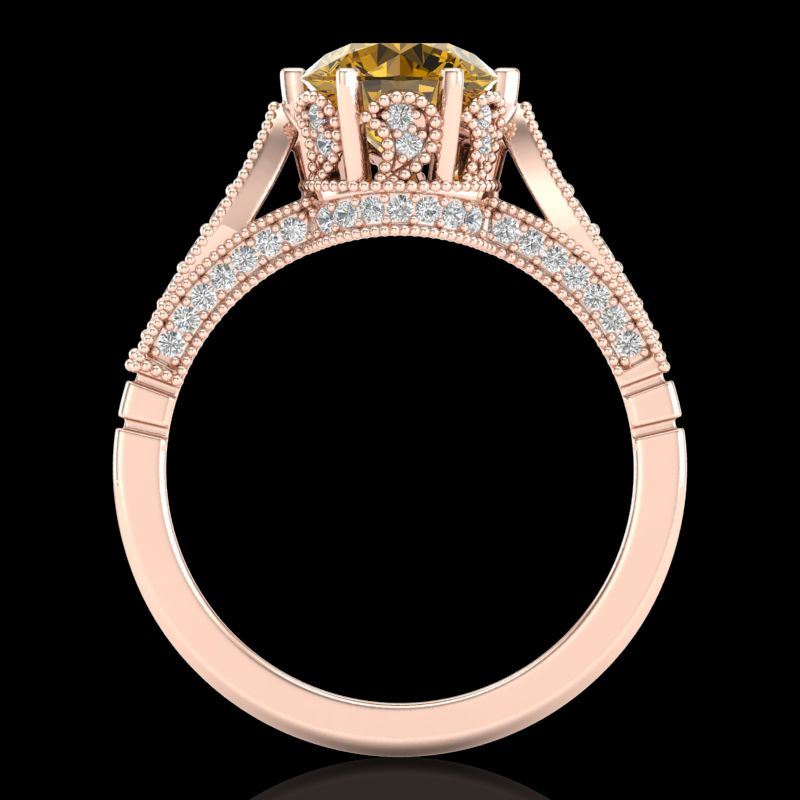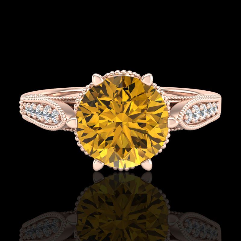 REF-336H4A -38093 ---- 2.2 CTW Intense Fancy Yellow Diamond Engagement Art Deco Ring 18K Rose Gold ---- Luxury Designer Brand Ring Appraised at $20,350 Certificate Number US38093 18k Rose gold, Ring Size is 7, Ring measuring approx. Uniform, weighing in total approx. 6 grams. Made in the USA and is stamped 18k, Main stone 1.55 carat total weight containing 1 pieces of Intense Fancy Yellow color with SI quality Round shape cut Diamond , Stone #2 0.65 carat total weight containing 57 pieces of H-I color with VS/SI quality Round shape cut Diamond