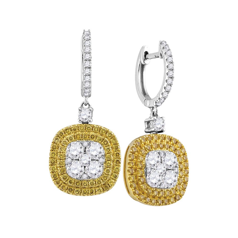 REF-337W4K- SKU: GD102759 ---- 2.2 CTW Yellow Diamond Square Cluster Dangle Earrings 18KT White Gold
