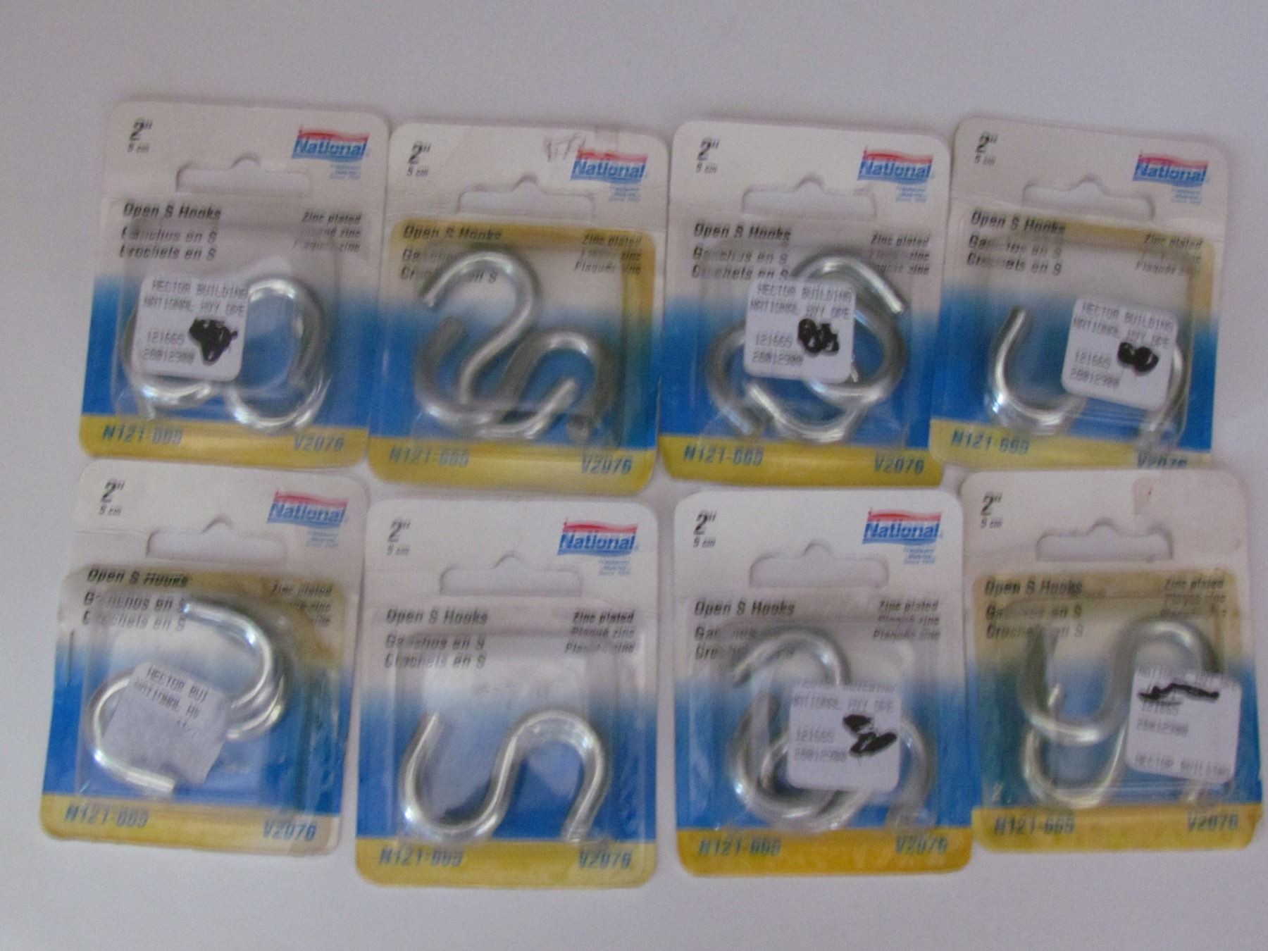 2' , 2 PACK S HOOKS, 8 PACKAGES TOTAL
