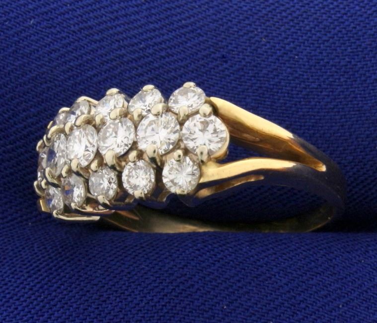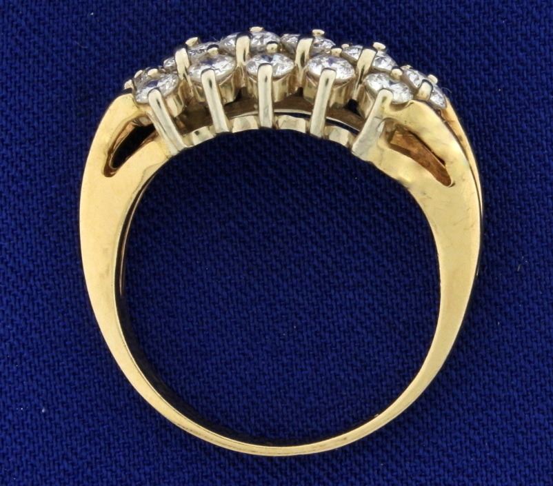 In 14K yellow gold. Contains six .20ct diamonds and ten .10ct high quality round brilliant diamonds. The diamonds are VS/H color. Size 9 3/4 5.7g