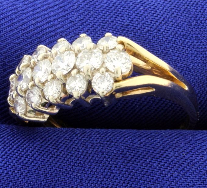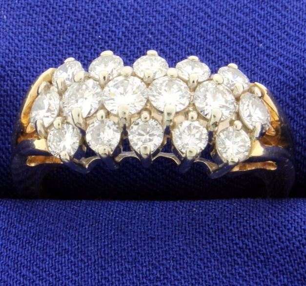 14K yellow gold with six .20ct diamonds, & ten .10ct diamonds. The diamonds are VS to SI-1 clarity, H color. Size 9 3/4 5.7g