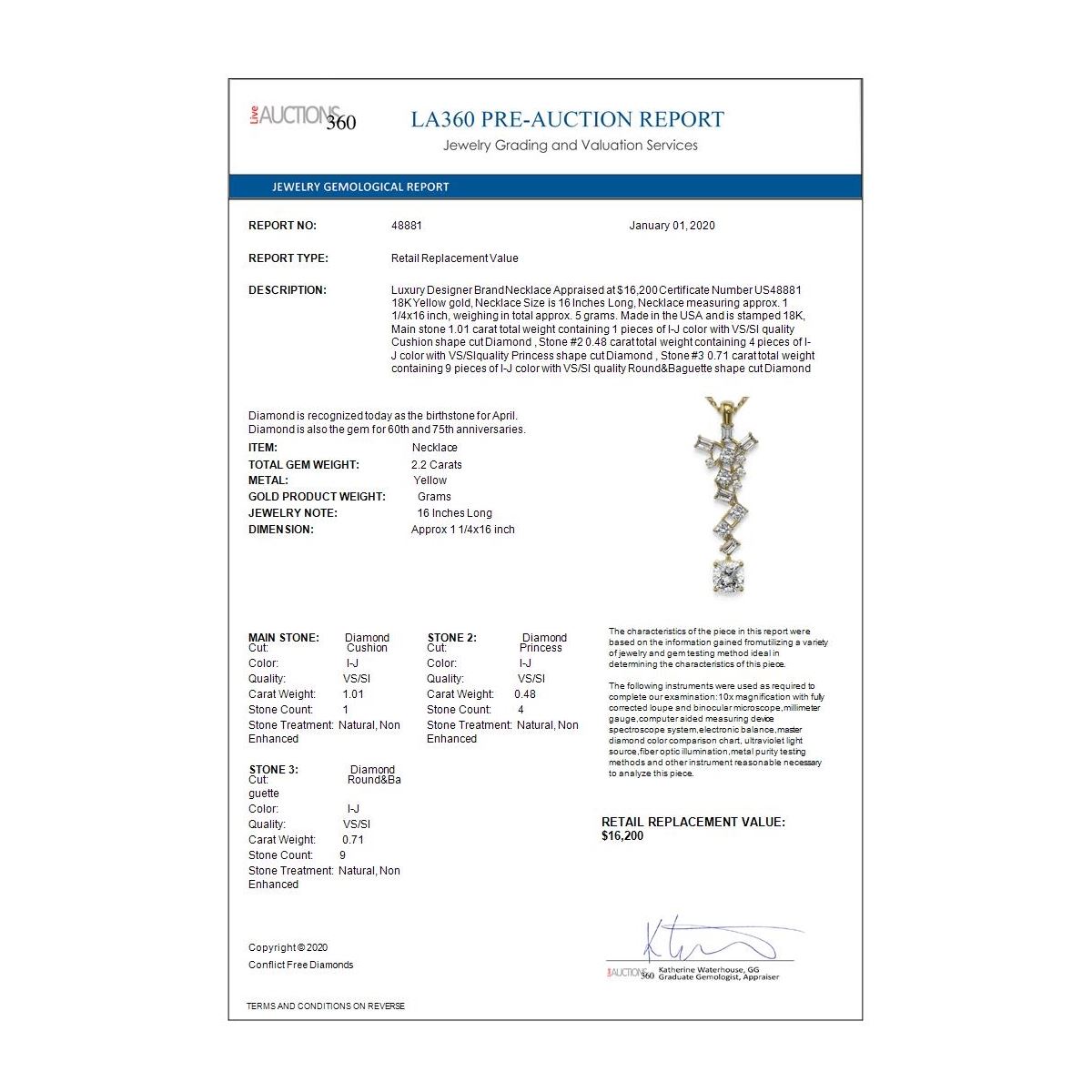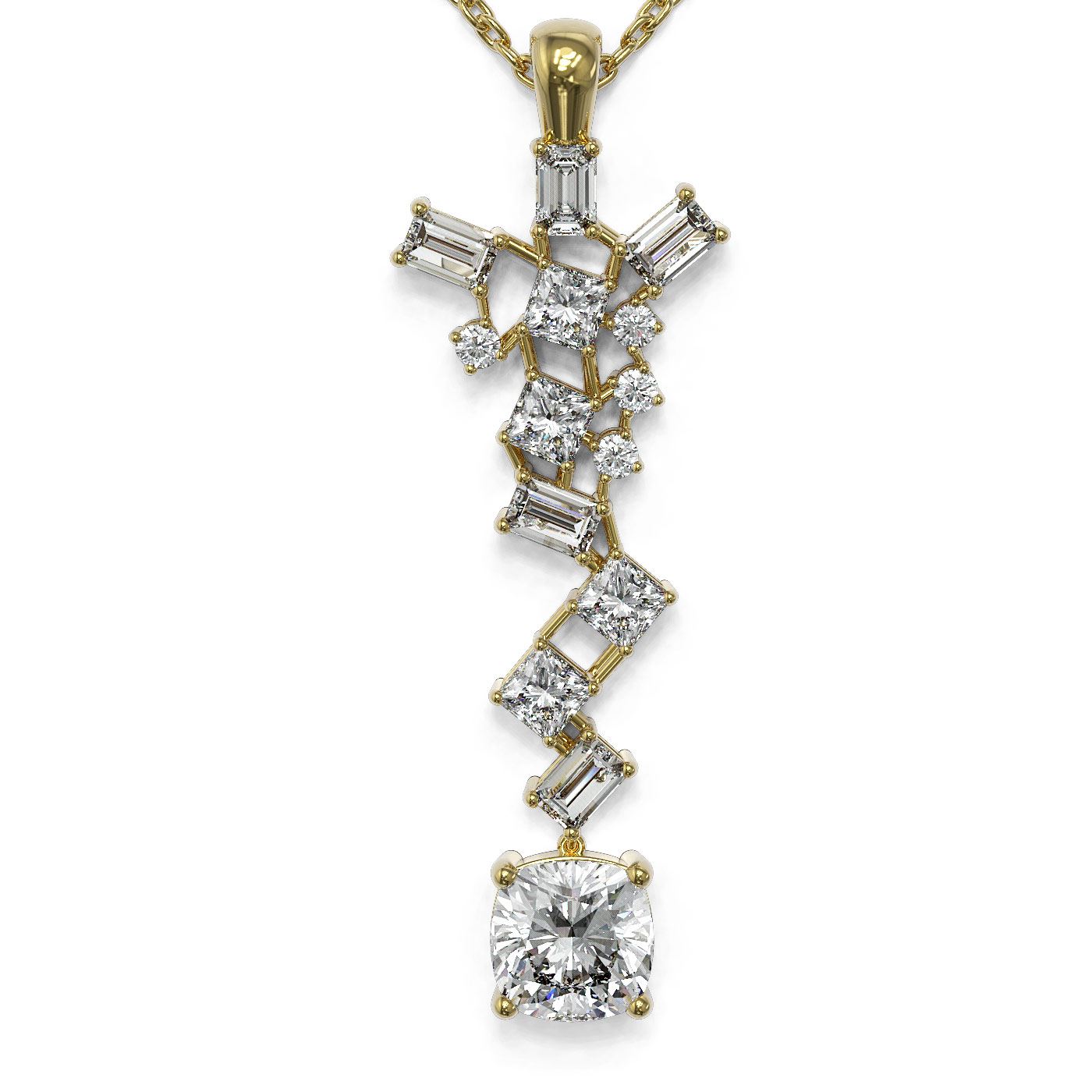 REF-429A5N - SKU: 48881 ---- 2.2 ctw Cushion Cut Diamond Designer Necklace 18K Yellow Gold