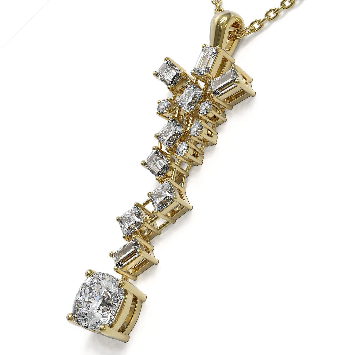 REF-429A5N - SKU: 48881 ---- 2.2 ctw Cushion Cut Diamond Designer Necklace 18K Yellow Gold