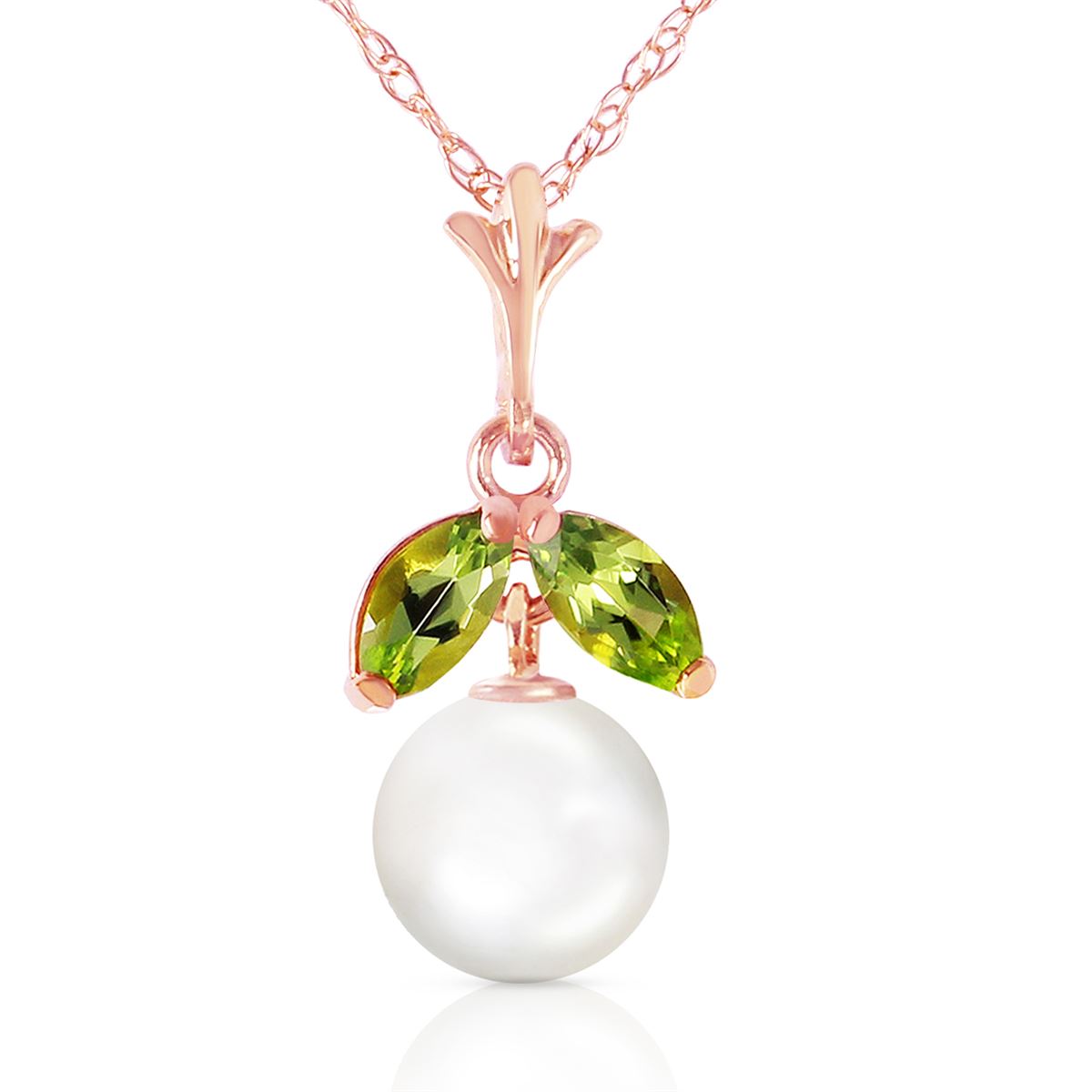 Genuine 14K Rose Gold 2.2 ctw Pearl & Peridot Necklace