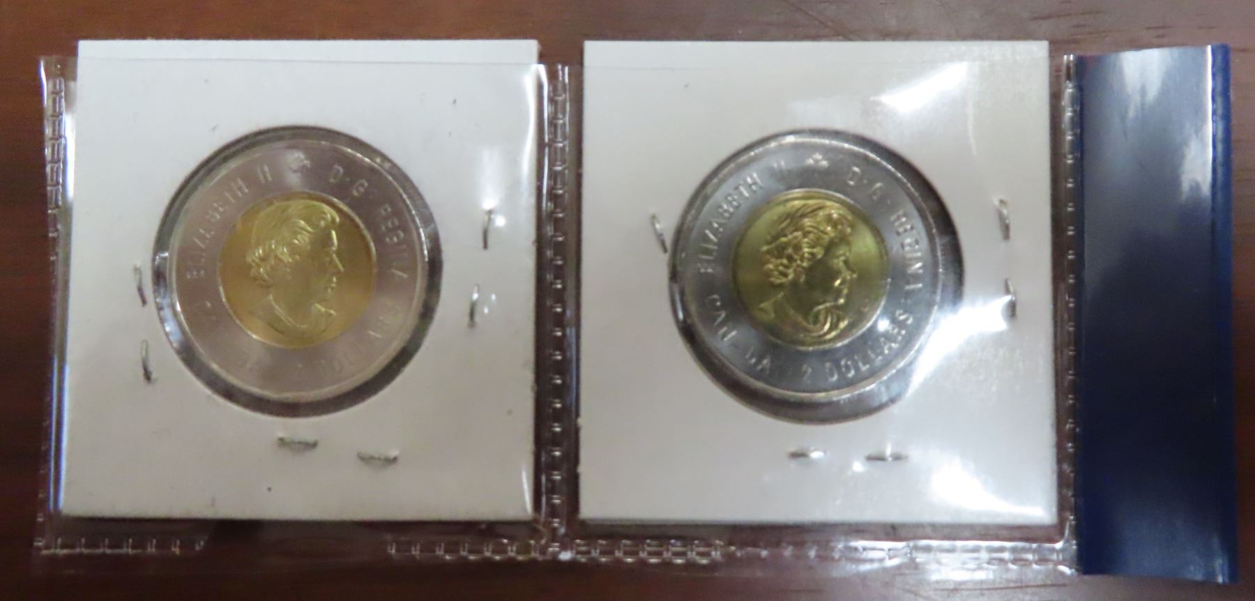2, 2 dollar- 2020 coloured " bill reid" coins (BU)