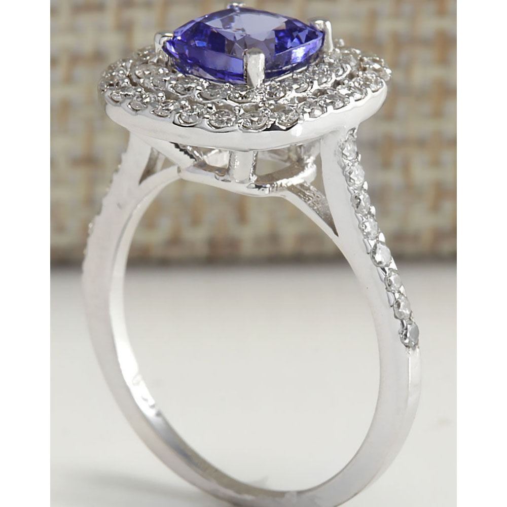 2.20 CTW Natural Blue Tanzanite And Diamond Ring In 14K White Gold