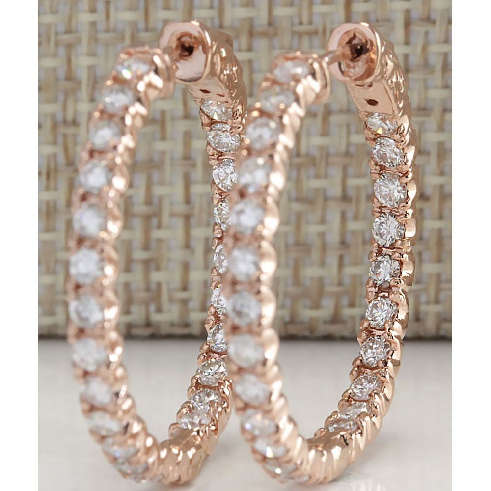 2.20 CTW Natural Diamond Hoop Earrings 18K Solid Rose Gold