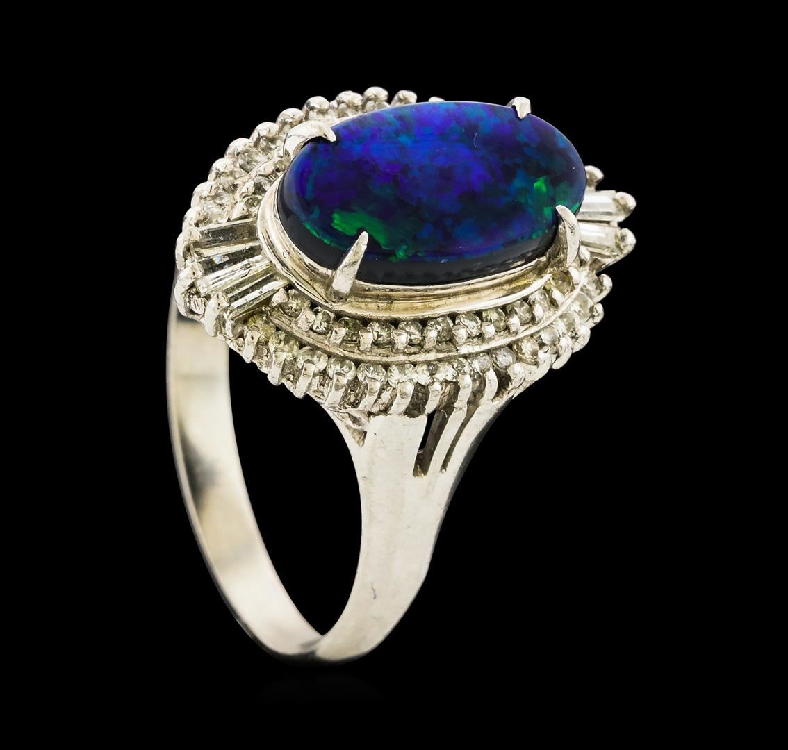 One ring featuring: Platinum containing Black Opal with a total weight of 2.20ct and Diamonds with a total weight of 0.64ct. Total Weight of Ring: 9.2 grams.
