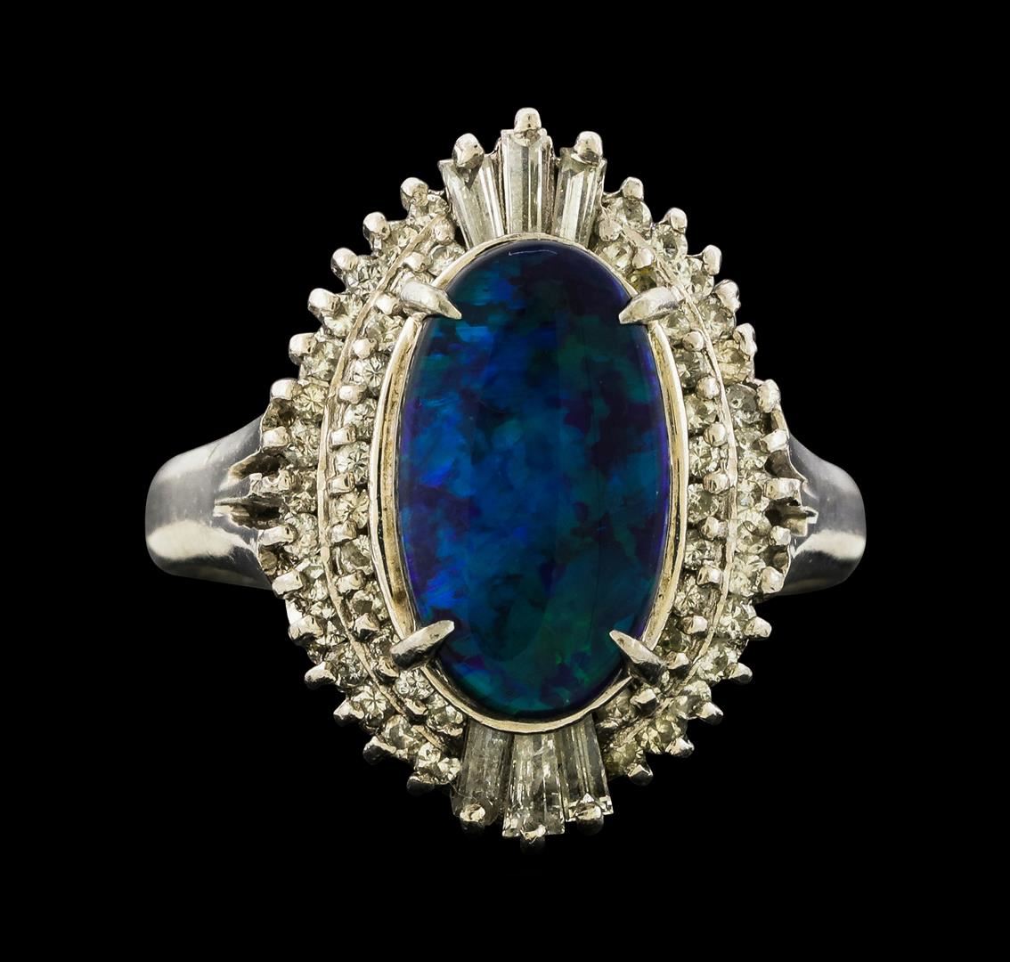 One ring featuring: Platinum containing Black Opal with a total weight of 2.20ct and Diamonds with a total weight of 0.64ct. Total Weight of Ring: 9.2 grams.