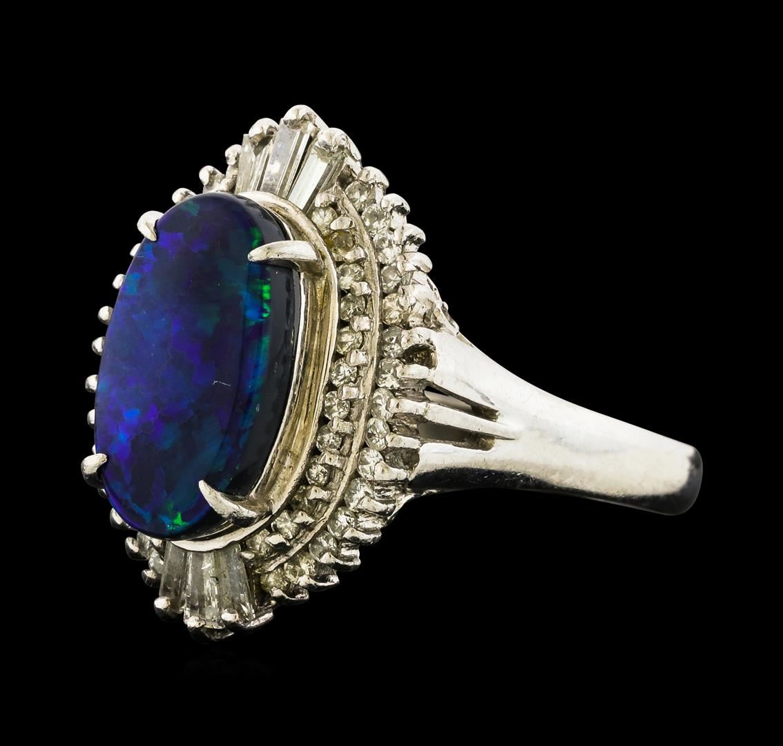 One ring featuring: Platinum containing Black Opal with a total weight of 2.20ct and Diamonds with a total weight of 0.64ct. Total Weight of Ring: 9.2 grams.
