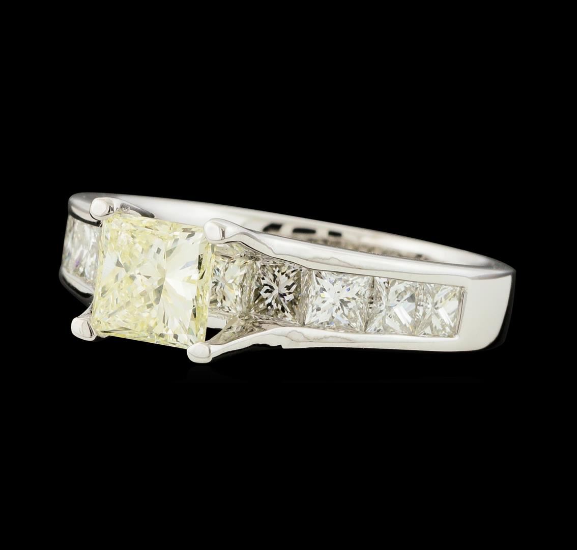 One electronically tested 18KT white gold lady's cast wedding ring with a cathedral shank with a bright polish finish. The featured lady's ring has a shank measuring 3.19 millimeters wide. Identified with markings of '18K 750'. Condition is new, good workmanship. Containing: One prong set princess cut diamond, measuring 5.69 x 5.55 x 3.85mm (depth est.) approximate weight of 1.00ct. Graded in the setting. Clarity SI-1. Color: K - L Cut Very Good Ten channel set princess cut diamonds, measuring 2.80 x 2.60 x 1.95mm (depth est.) approximate total weight of 10 Stones = 1.20ct. Graded in the setting. Clarity VS-2 to SI-1. Color: F - G Cut Very Good. Total Weight of Diamonds 2.20ct.. Total Weight of Ring 5.20gm. GAS Appraised at $14,560.00.