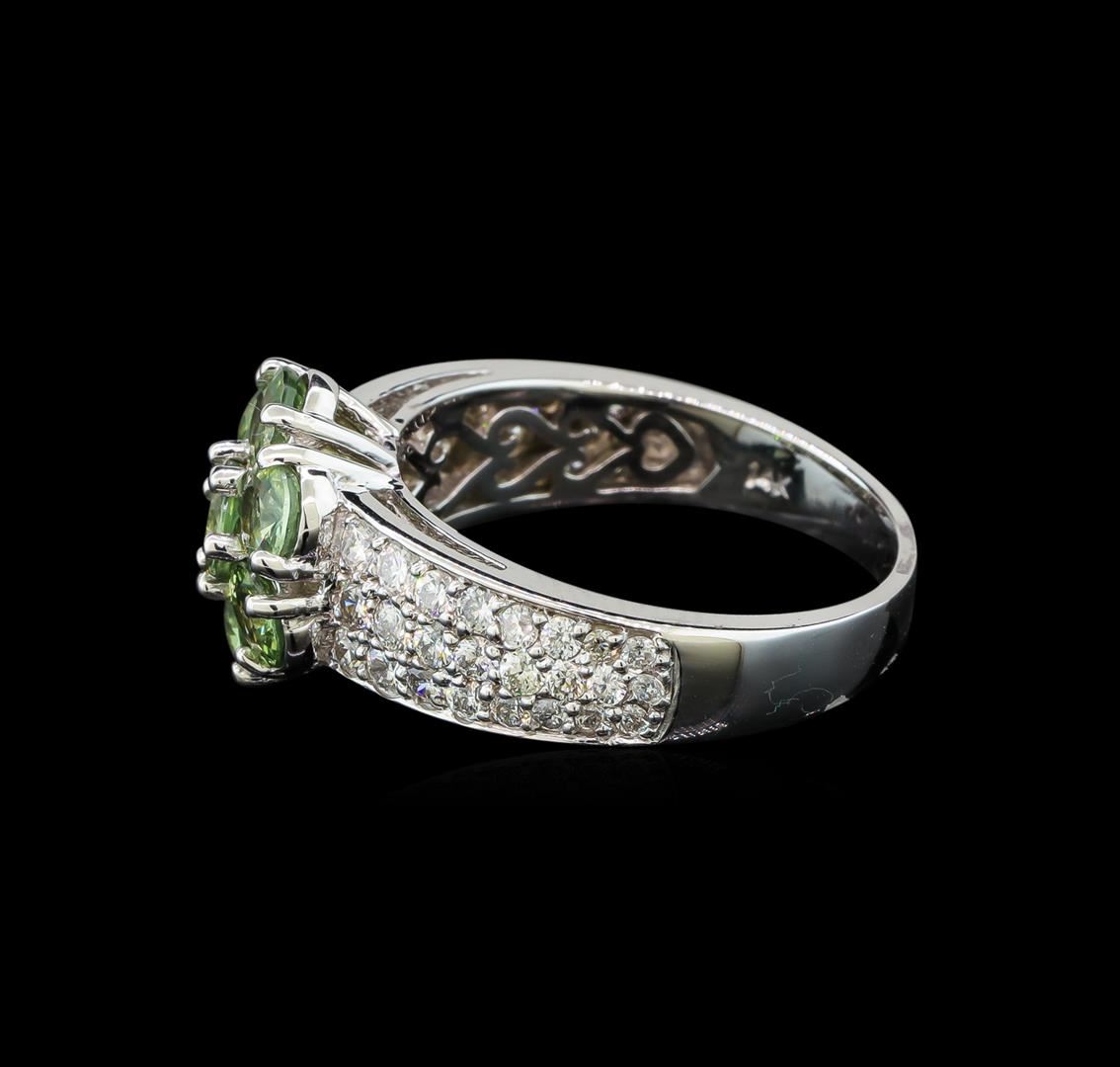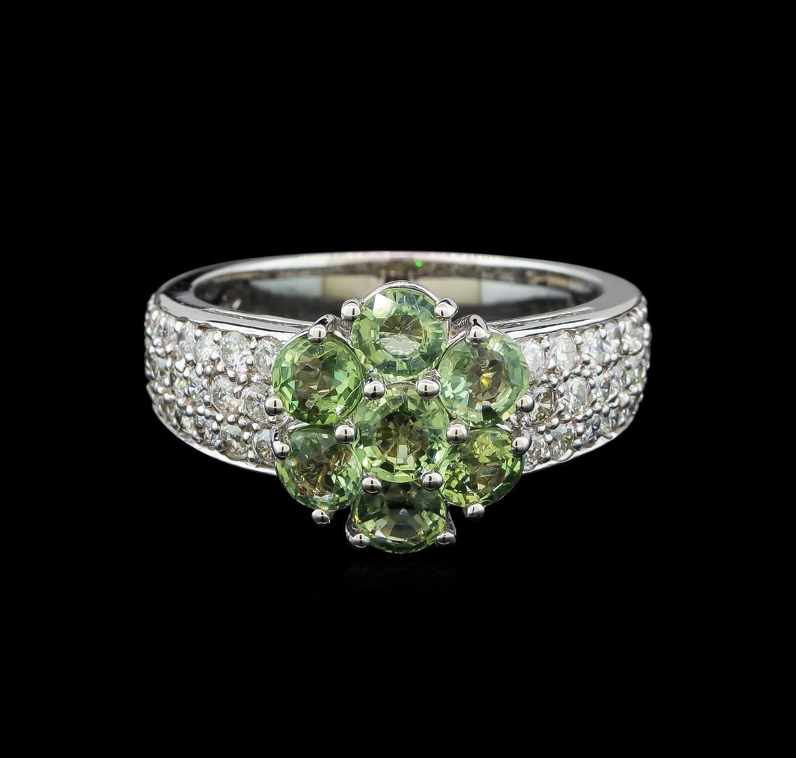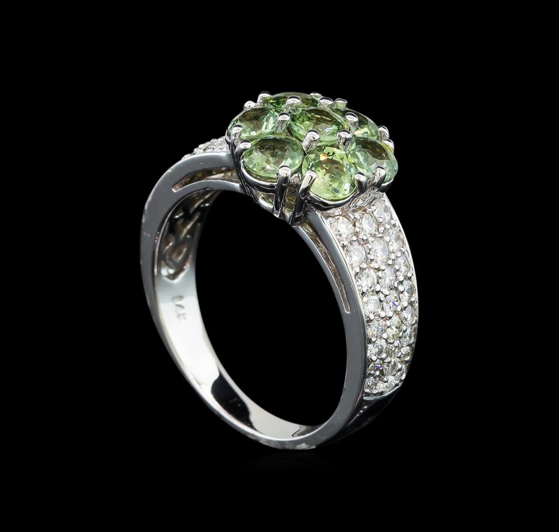One Ring : 14KT white gold weighing 5.32gm containing a green tourmaline center stone with a total weight of 2.20ct and side diamonds weighing 0.80ctw.