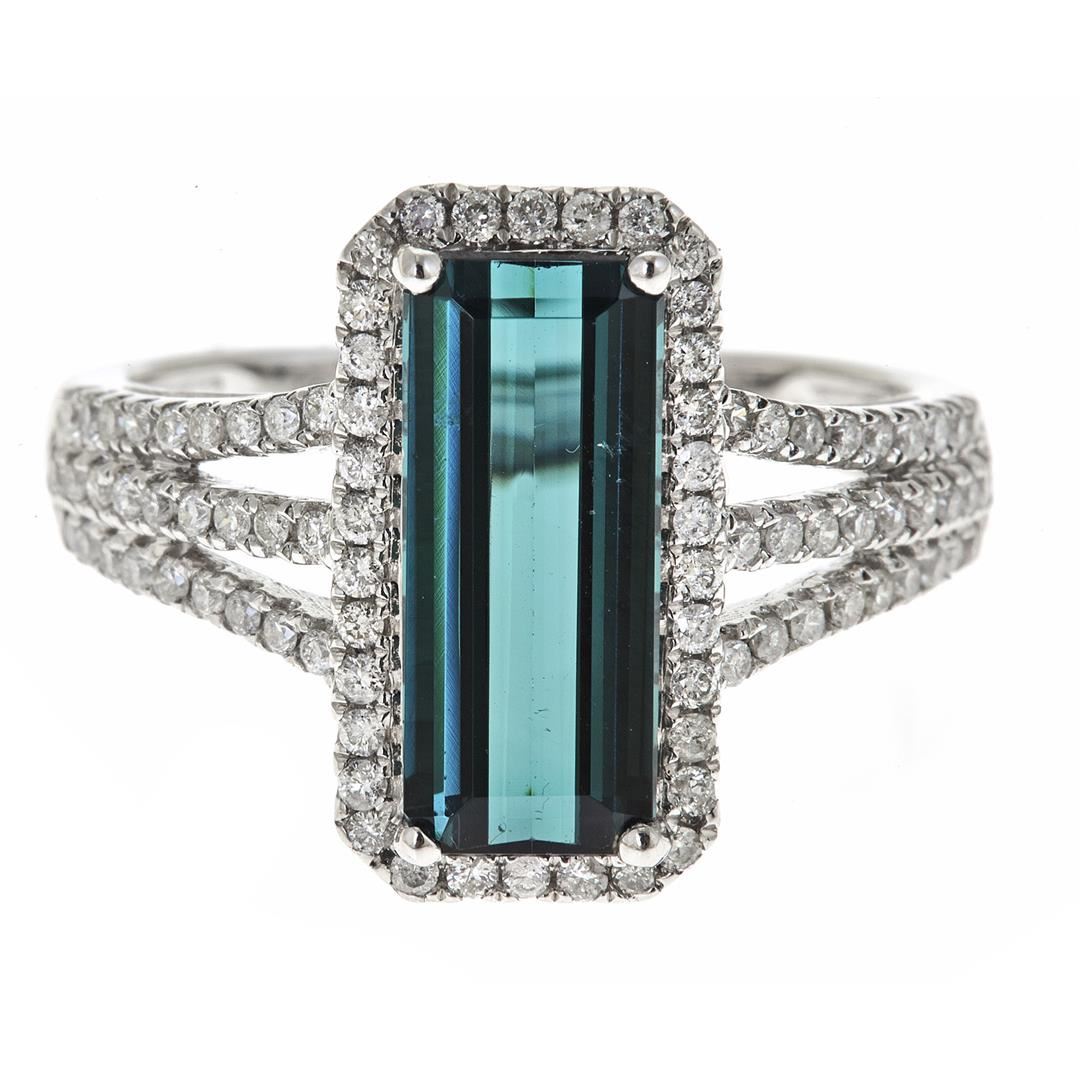 One lady's ring featuring: 14KT white gold weighing 3.56 grams containing one indigo weighing 2.20ct and diamonds weighing 0.53ctw.