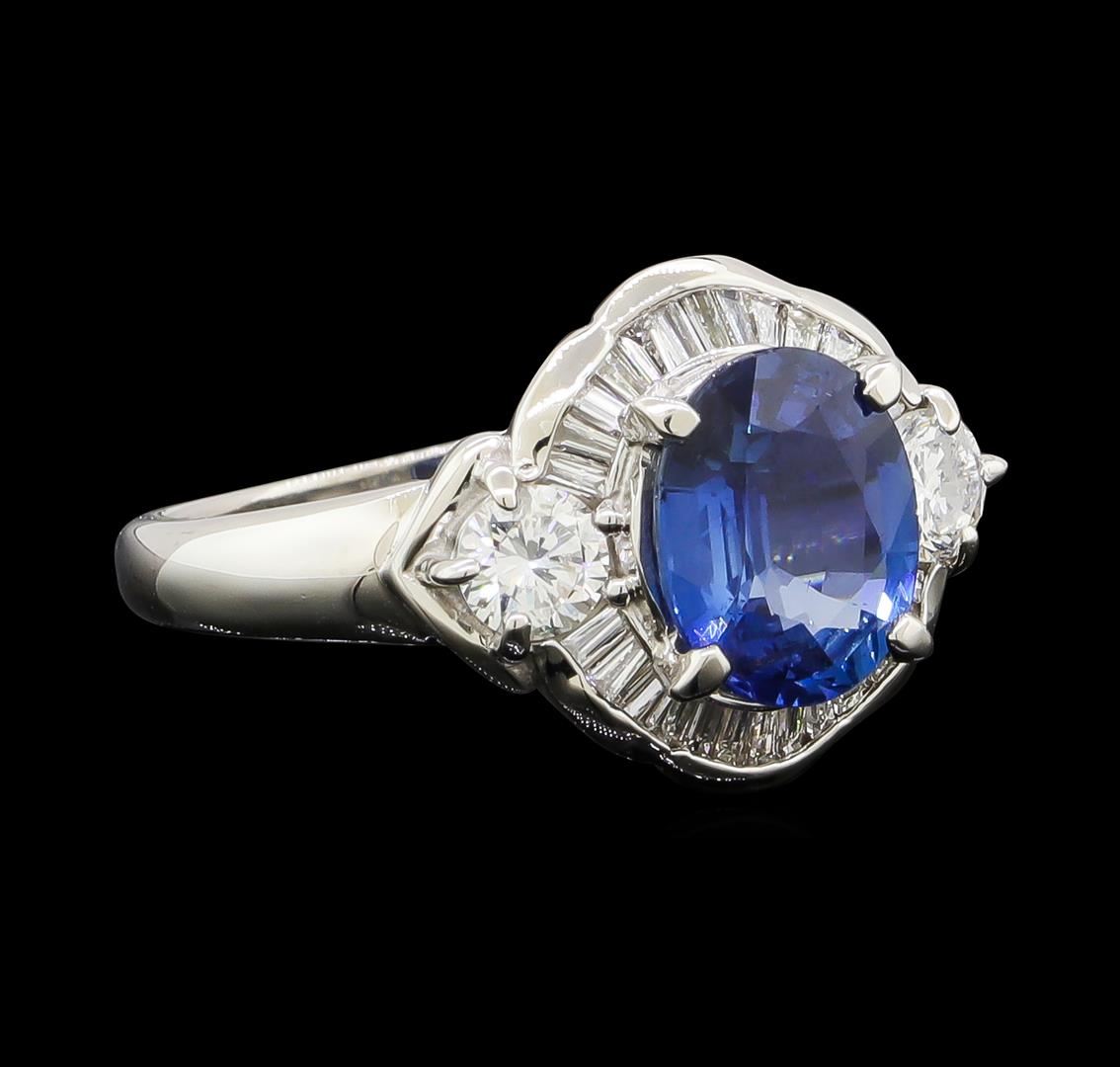 One ring featuring: Platinum containing Sapphire with a total weight of 2.20ct and Diamonds with a total weight of 0.73ct. Total Weight of Ring: 6.2 grams.