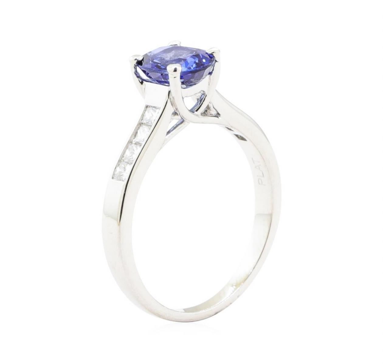 One ring featuring: platinum weighing 4.8 grams containing one sapphire weighing 1.70ct and diamonds weighing 0.50ctw.