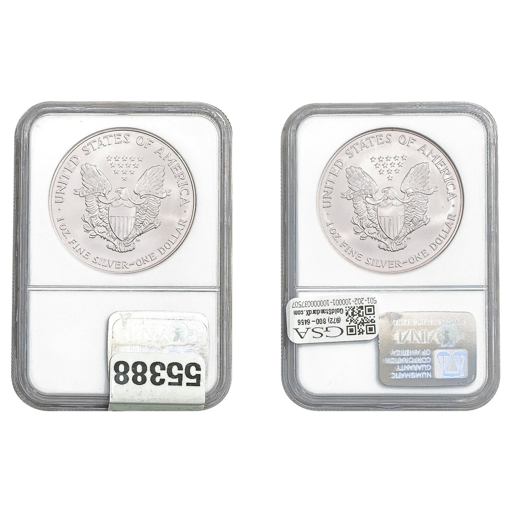 e. Coins sold referencing a third-party grading service are sold “AS IS” without any express or implied warranty, except for a guarantee by GSA that they are genuine. Removal or alteration of the holder, voids all of Bidder’s claims concerning that Product. Certain warranties may be available from the grading services and Bidders are referred to them for further details: Numismatic Guaranty Corporation (NGC), PO Box 4776, Sarasota, FL 34230, www.ngccoin.com/services/writtenguarantee.asp; Professional Coin Grading Services (PCGS), PO Box 9458, Newport Beach, CA 92658, www.pcgs.com/guarantee.html; ANACS, 6555 S. Kenton St., Ste. 303, Englewood, CO 80111; and Independent Coin Grading Co. (ICG), 7901 East Bellview, Ave., Suite 50, Englewood, CO 80111.