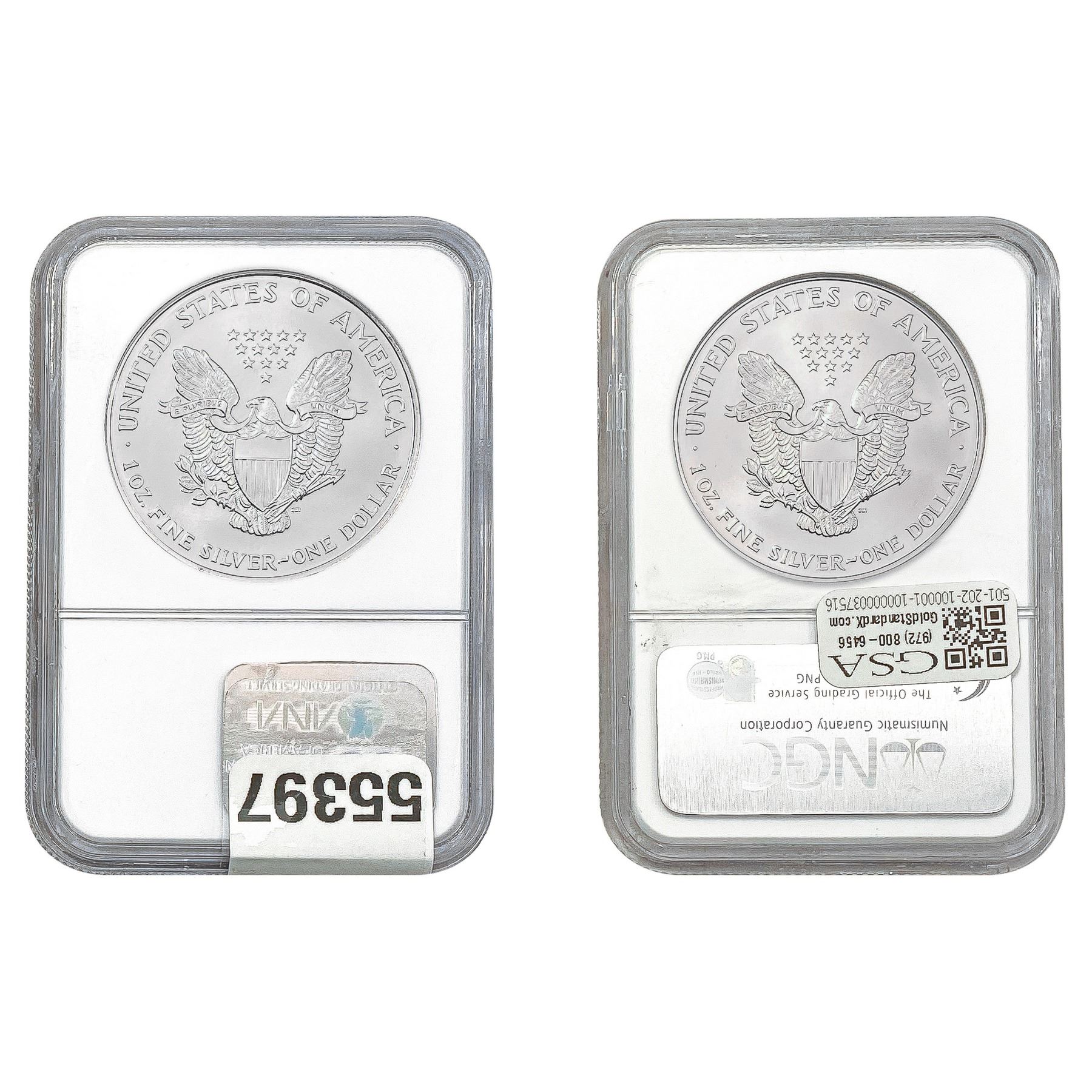 e. Coins sold referencing a third-party grading service are sold “AS IS” without any express or implied warranty, except for a guarantee by GSA that they are genuine. Removal or alteration of the holder, voids all of Bidder’s claims concerning that Product. Certain warranties may be available from the grading services and Bidders are referred to them for further details: Numismatic Guaranty Corporation (NGC), PO Box 4776, Sarasota, FL 34230, www.ngccoin.com/services/writtenguarantee.asp; Professional Coin Grading Services (PCGS), PO Box 9458, Newport Beach, CA 92658, www.pcgs.com/guarantee.html; ANACS, 6555 S. Kenton St., Ste. 303, Englewood, CO 80111; and Independent Coin Grading Co. (ICG), 7901 East Bellview, Ave., Suite 50, Englewood, CO 80111.