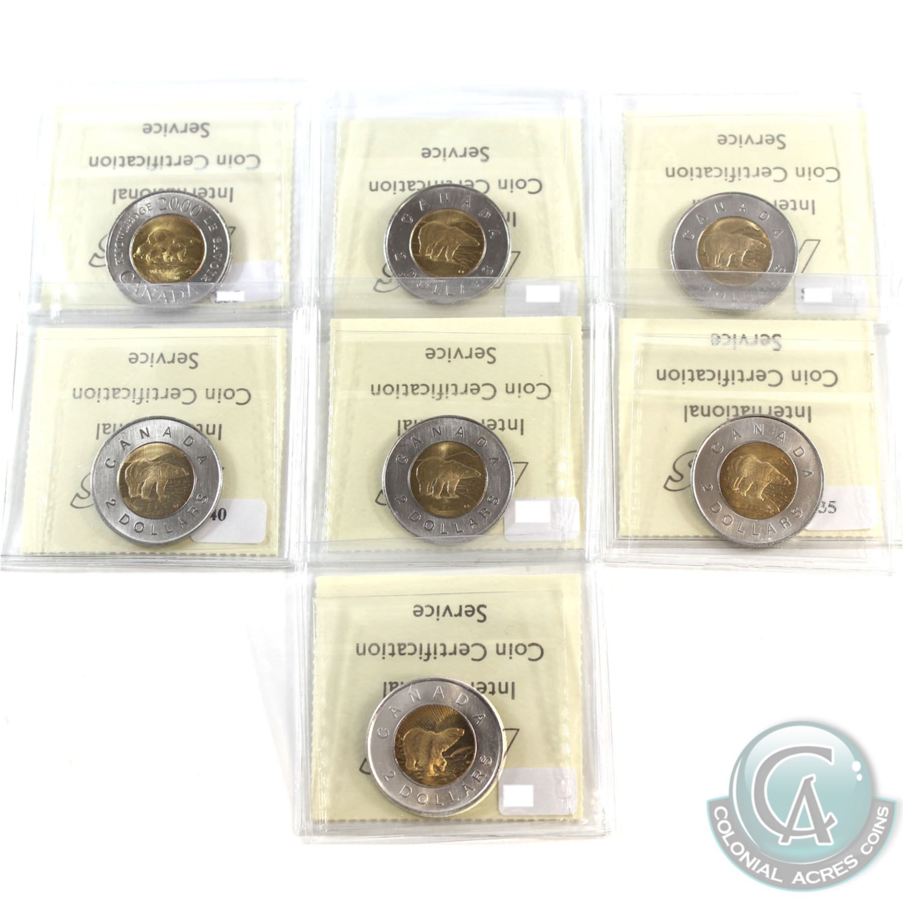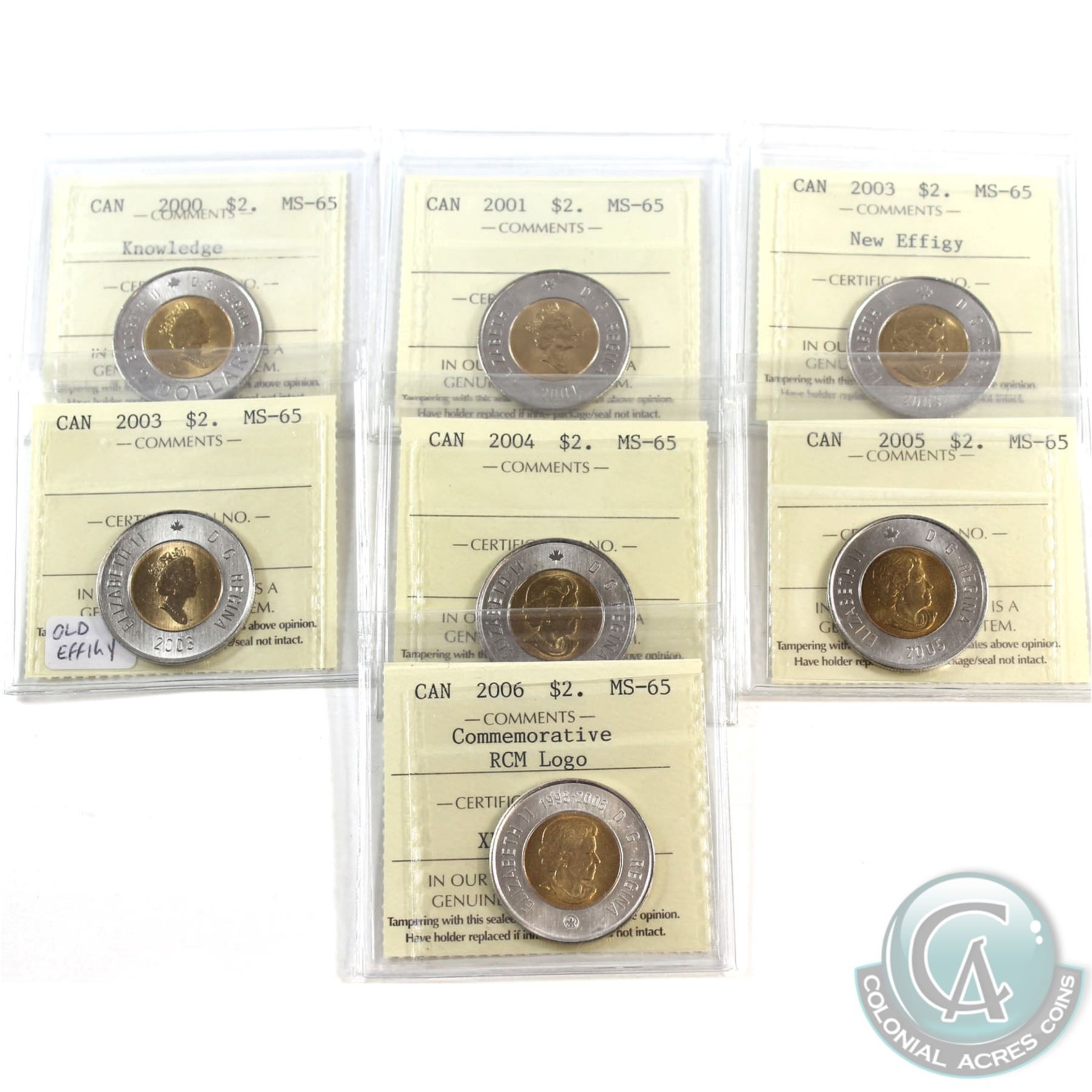 $2 2000 Knowledge, 2001, 2003 New Effigy, 2003 Old Effigy, 2004, 2005 & 2006 Commemorative RCM Logo ICCS Certified MS-65. 7pcs