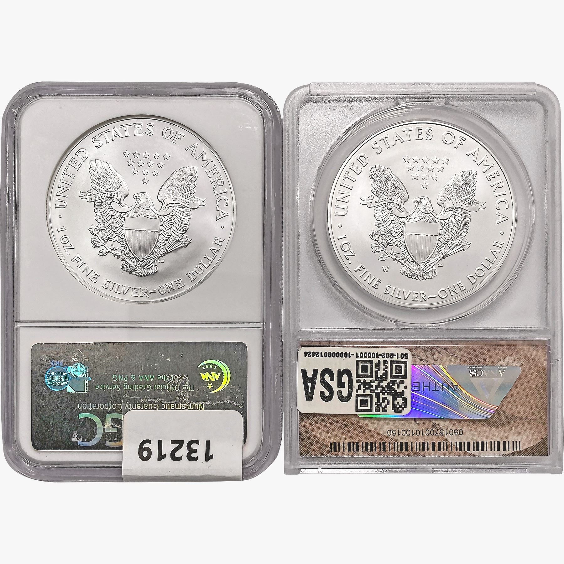 [2] 2001 & 2017 Silver Eagle ANACS/NGC SP/MS69/70