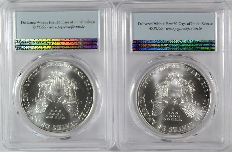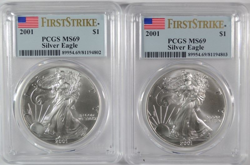( 2 ) 2001 AMERICAN SILVER EAGLES, PCGS MS-69 FIRST STRIKE LOW POPULATION
