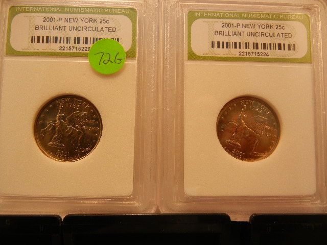 (2) 2001-P New York State Quarters, Graded by INB BU