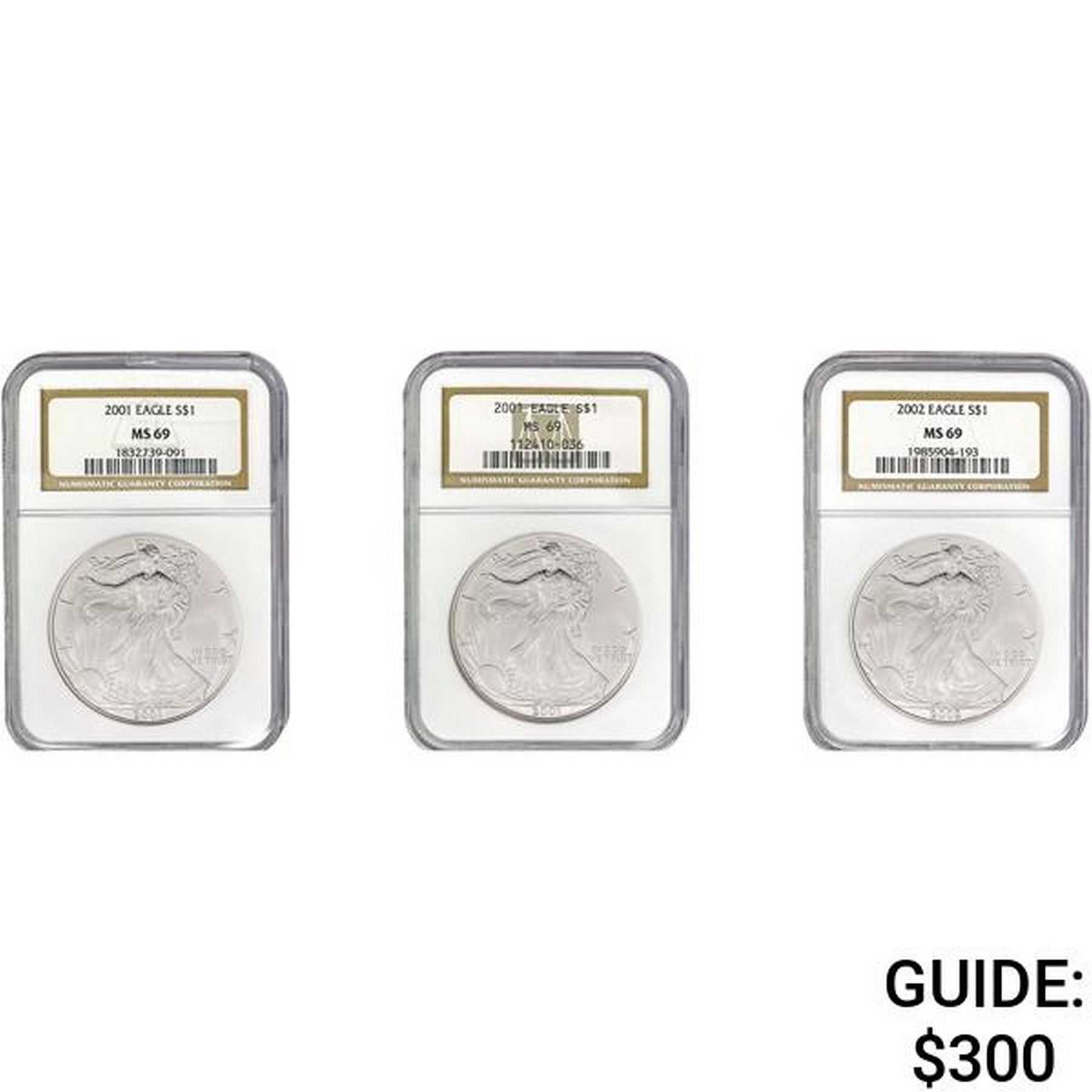 [2] 2001 Silv Eagle $1 NGC MS69- [1] 2002 Eagle $1 NGC 69
