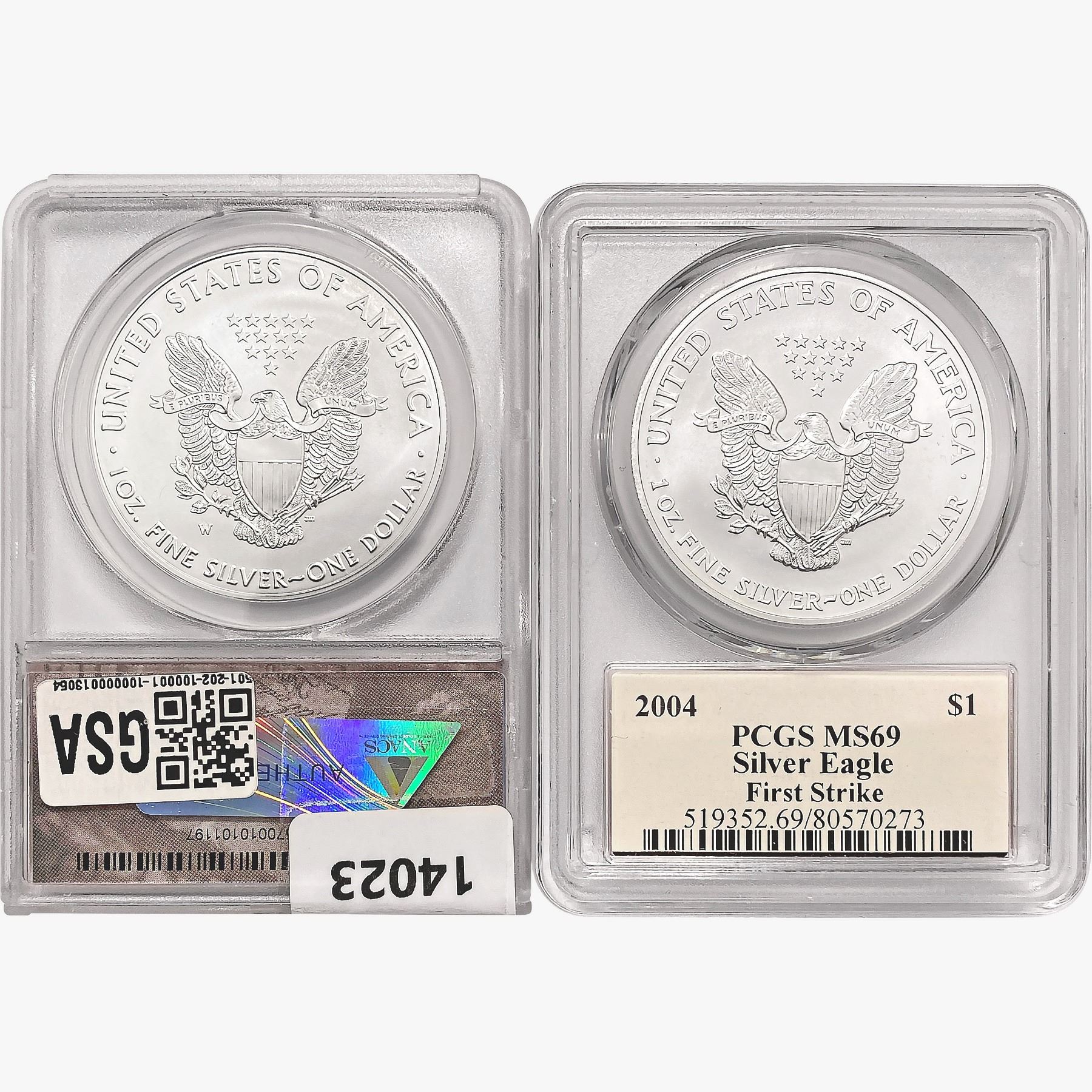 [2] 2004 & 2017 Silver Eagle ANACS/PCGS SP/MS69/70