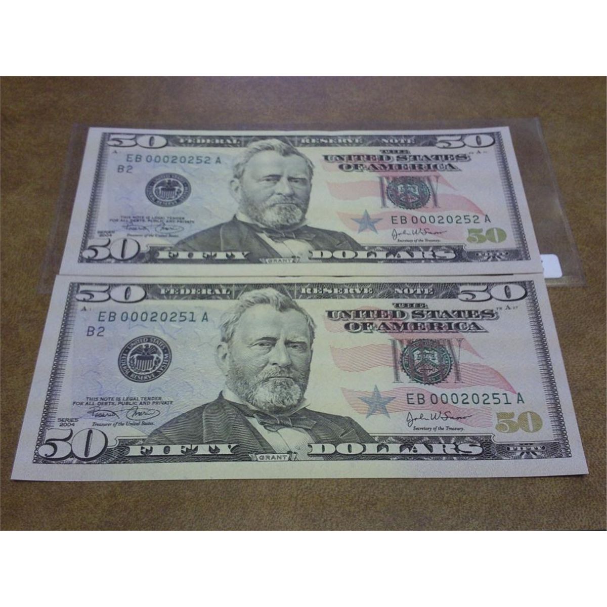 2-2004 $50 FRN'S CRISP CU CONSECUTIVE SERIAL #'S