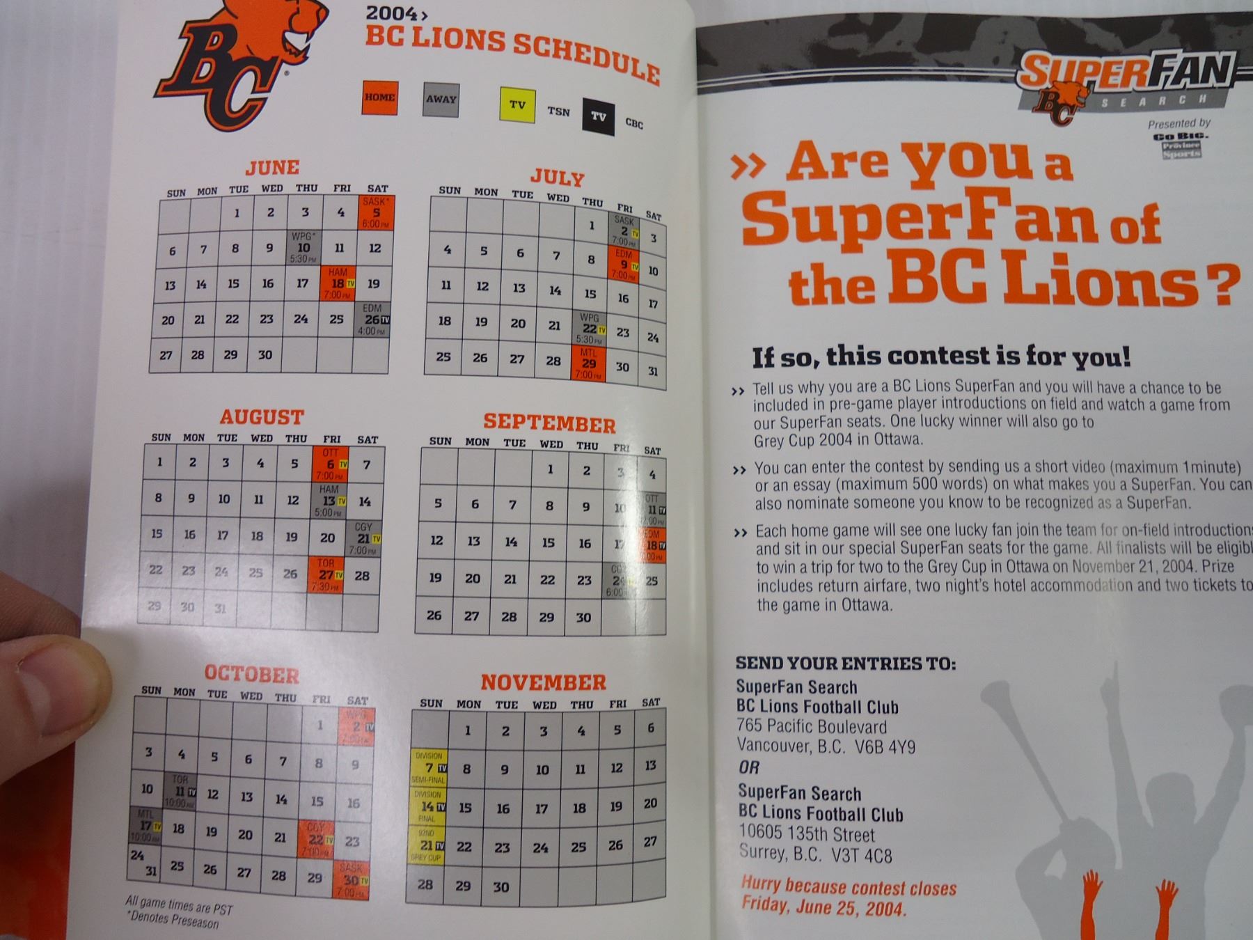 (2) 2004 Media Guides for B.C. Lions