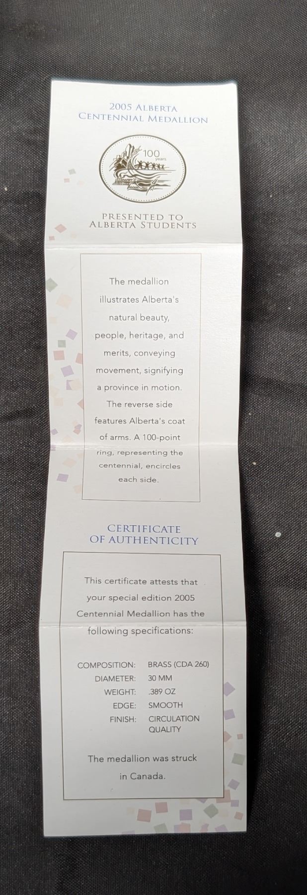 (2) 2005 Alberta Centennial Medallion w/ Certificate of Authenticity