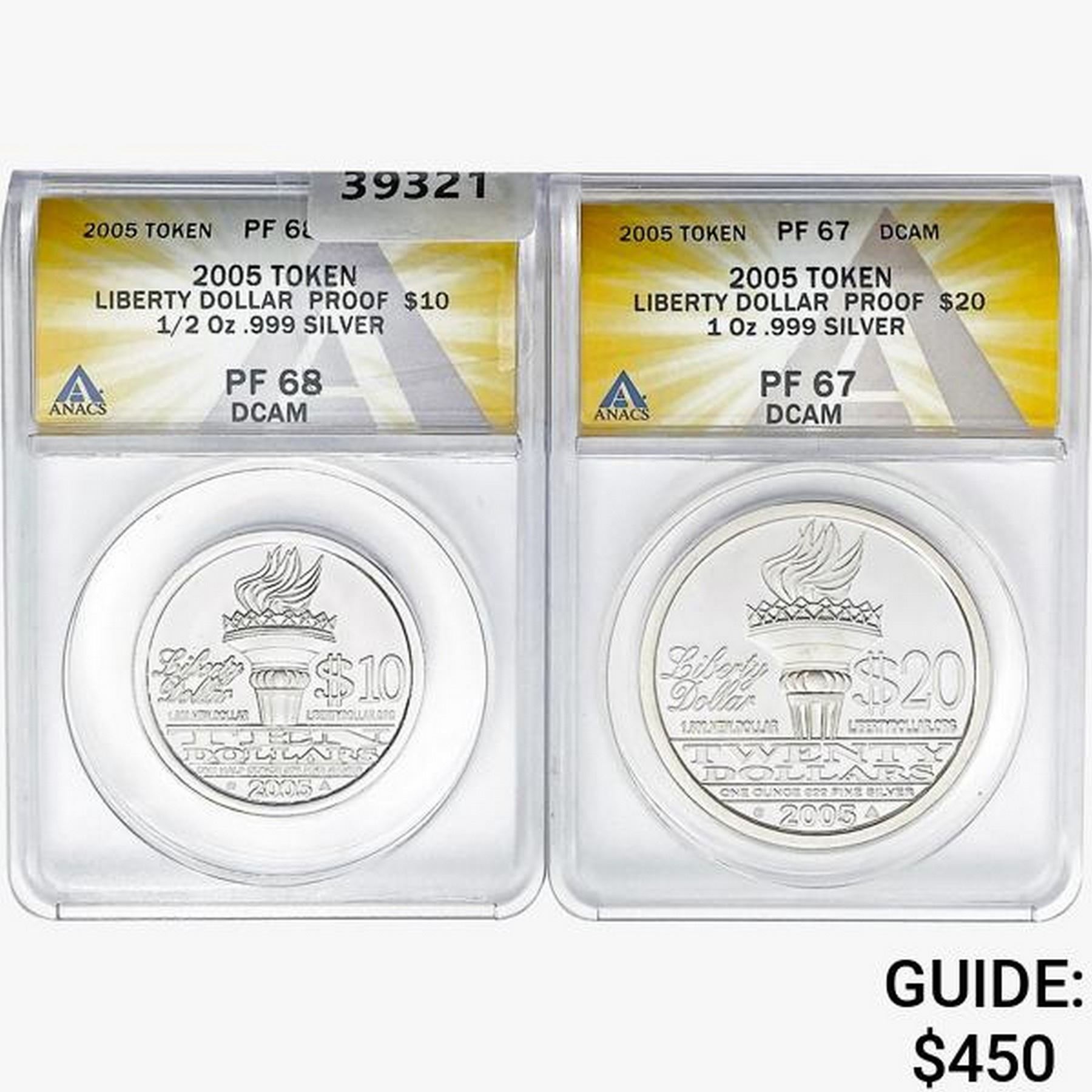[2] 2005 Silver Lib. $10&$20 Token ANACS PF DCAM