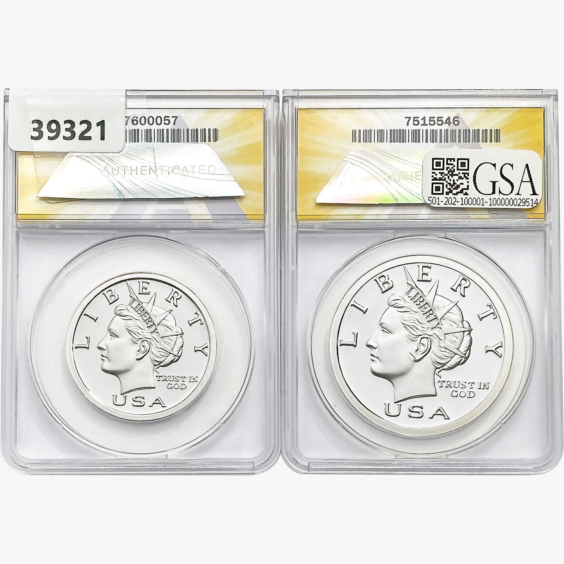 e. Coins sold referencing a third-party grading service are sold “AS IS” without any express or implied warranty, except for a guarantee by GSA that they are genuine. Removal or alteration of the holder, voids all of Bidder’s claims concerning that Product. Certain warranties may be available from the grading services and Bidders are referred to them for further details: Numismatic Guaranty Corporation (NGC), PO Box 4776, Sarasota, FL 34230, www.ngccoin.com/services/writtenguarantee.asp; Professional Coin Grading Services (PCGS), PO Box 9458, Newport Beach, CA 92658, www.pcgs.com/guarantee.html; ANACS, 6555 S. Kenton St., Ste. 303, Englewood, CO 80111; and Independent Coin Grading Co. (ICG), 7901 East Bellview, Ave., Suite 50, Englewood, CO 80111.