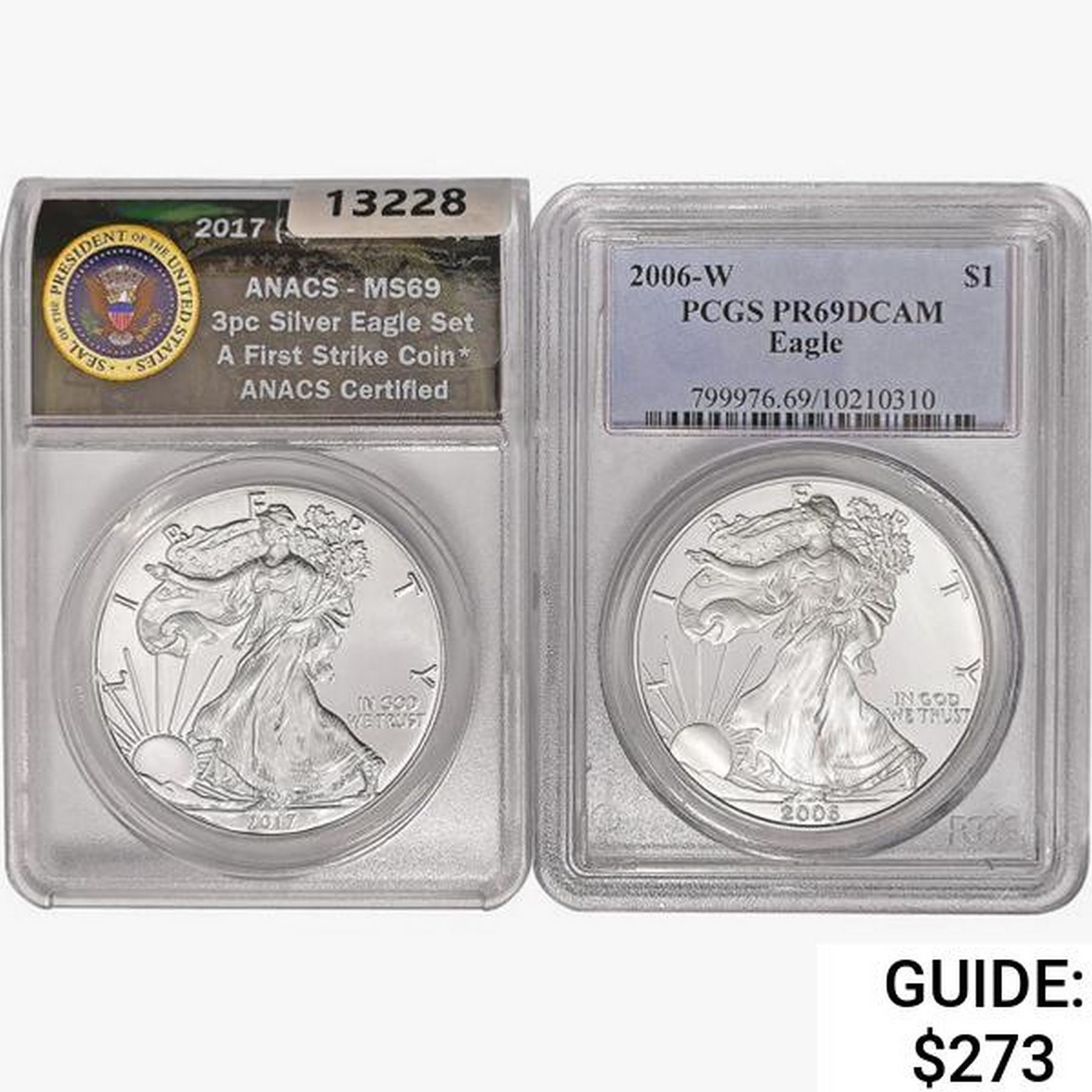 [2] 2006 & 2017 Silver Eagle ANACS/PCGS PR/MS69