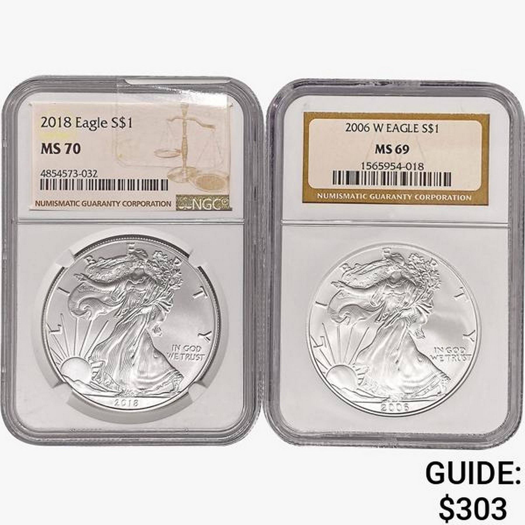 [2] 2006 & 2018 Silver Eagle NGC MS69/70