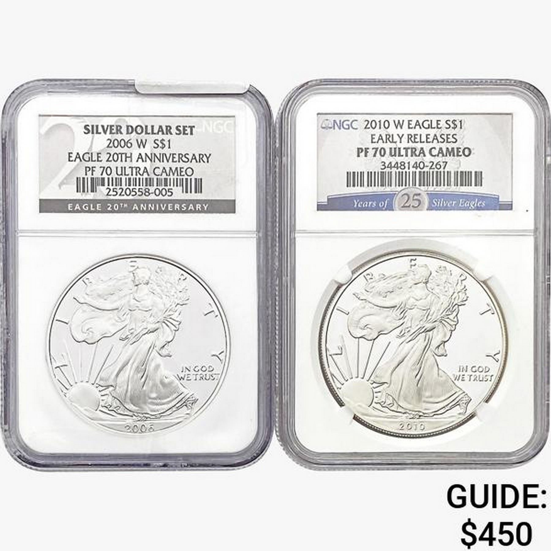 [2] 2006-W&2010-W Silver Eagle NGC PF70 UC