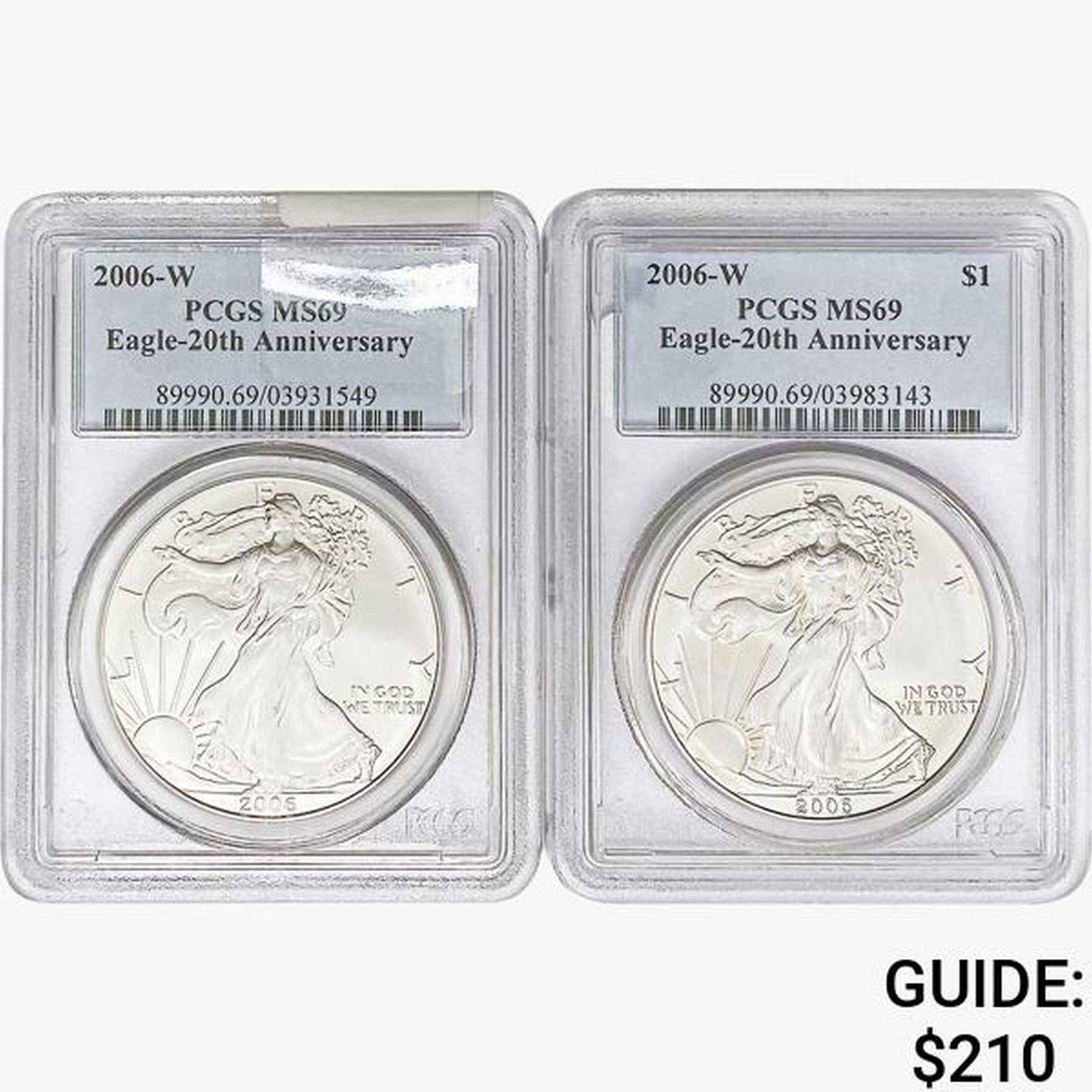 [2] 2006-W Silver Eagle PCGS MS69 20th ANNIV.