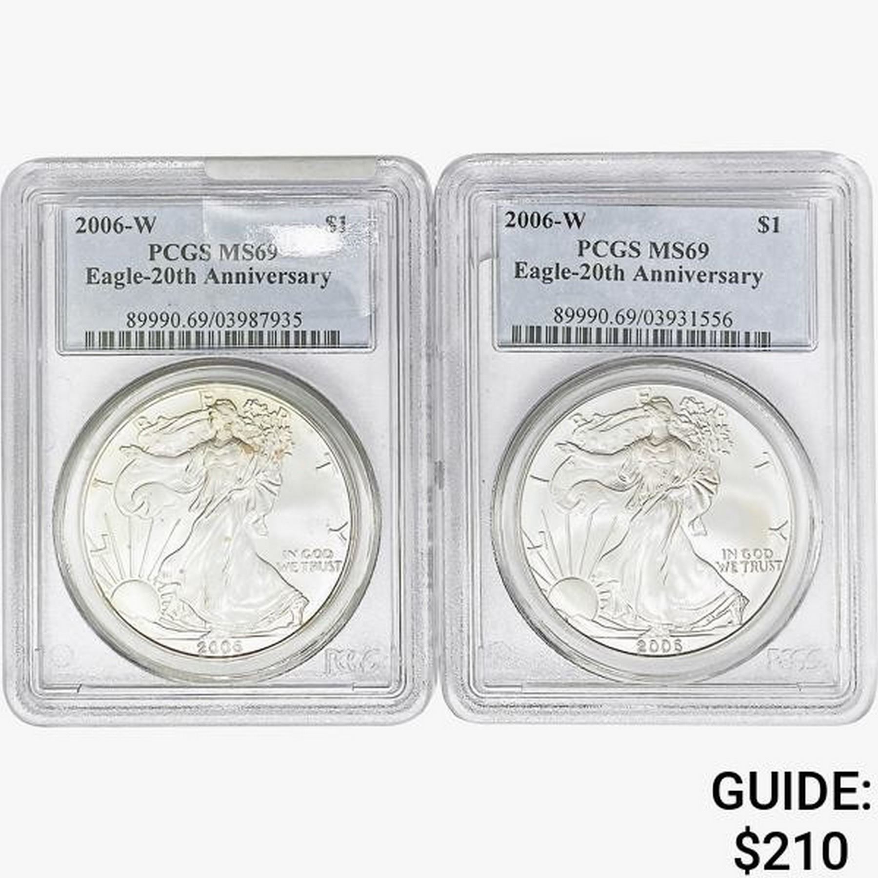 [2] 2006-W Silver Eagle PCGS MS69 20th ANNIV.