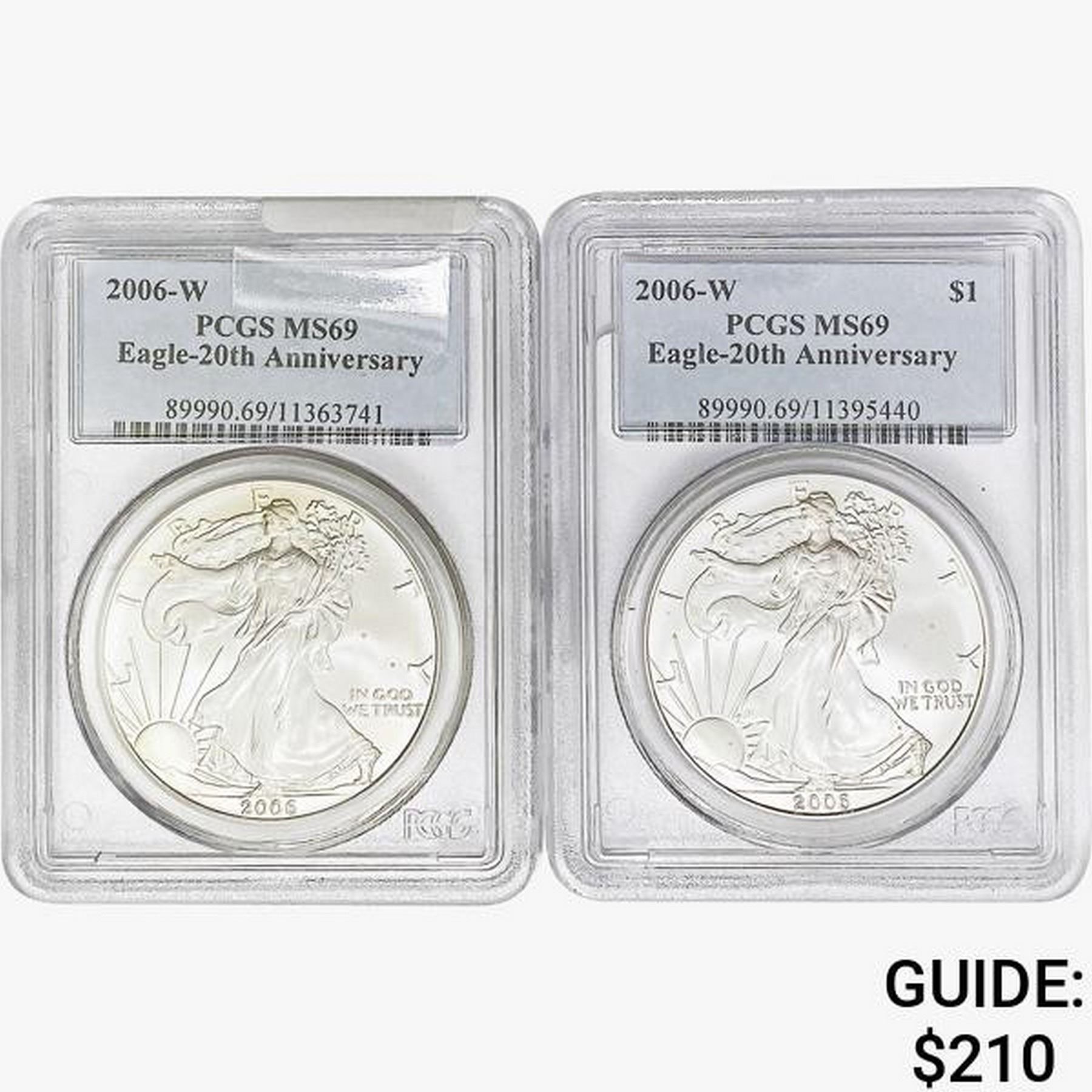 [2] 2006-W Silver Eagle PCGS MS69 20th ANNIV.