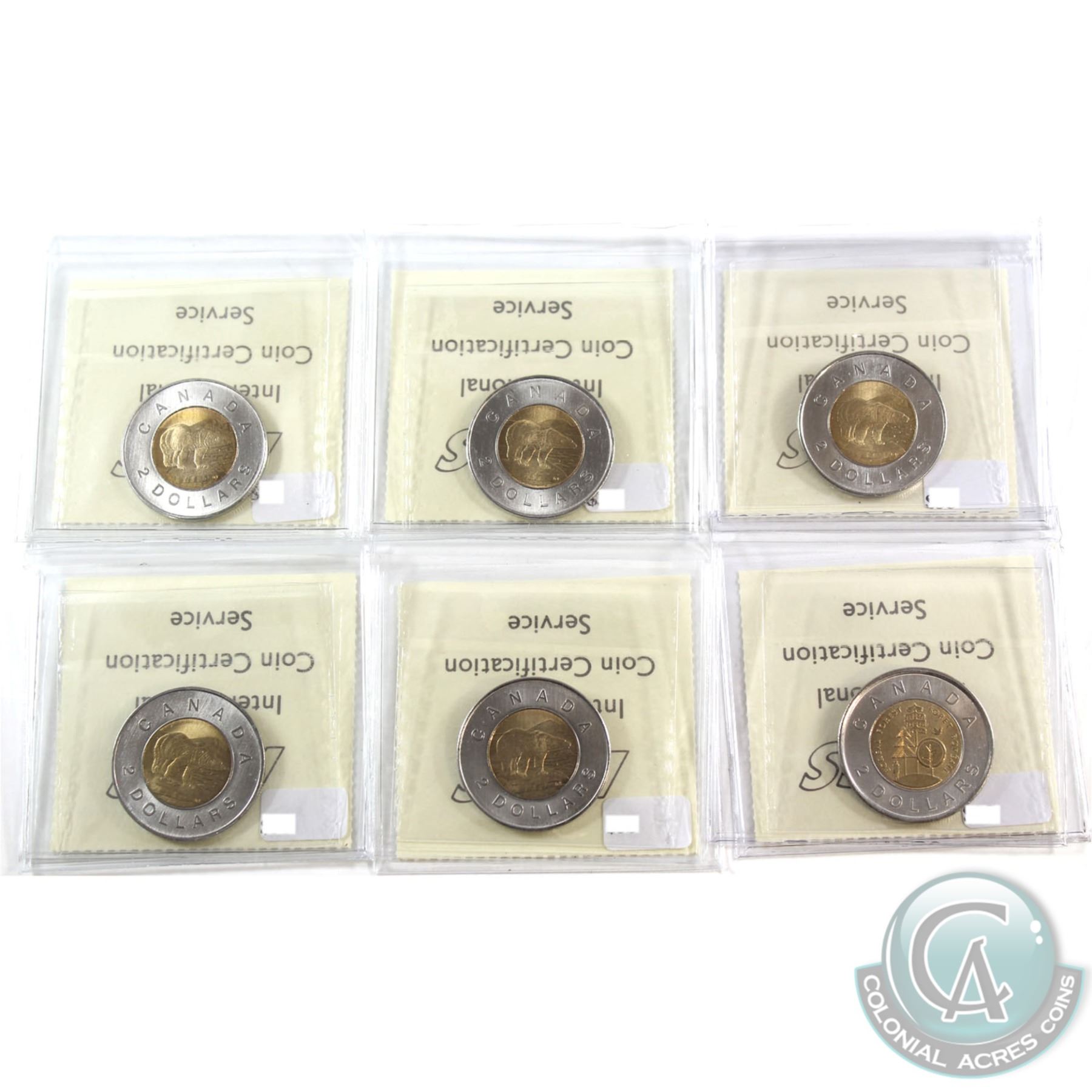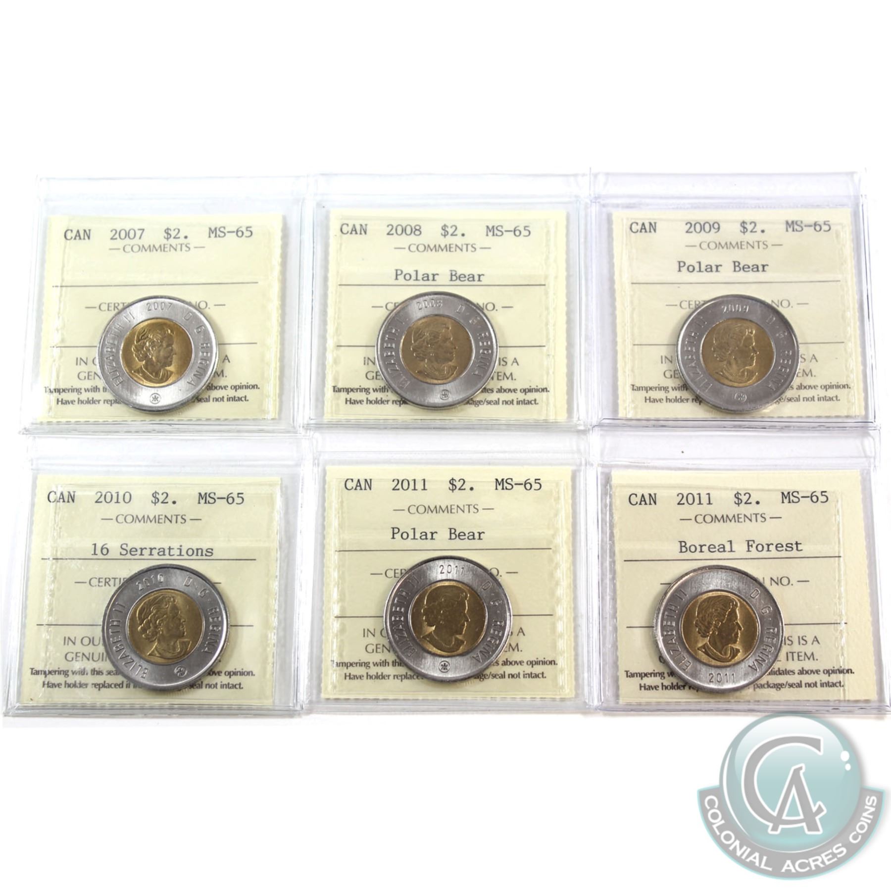 $2 2007, 2008, 2009, 2010 16 Serrations, 2011 & 2011 Boreal Forest ICCS Certified MS-65. 6pcs