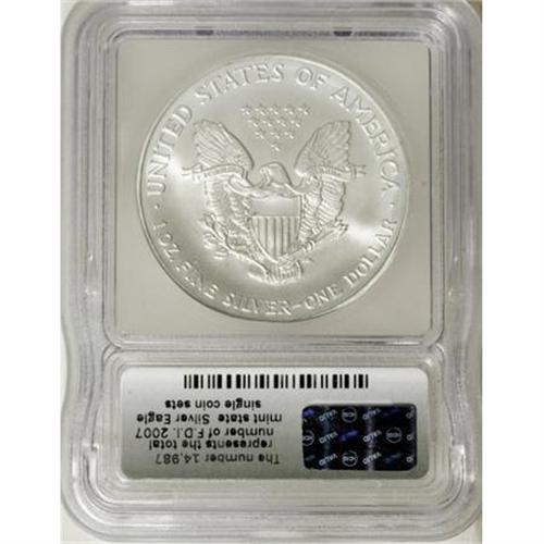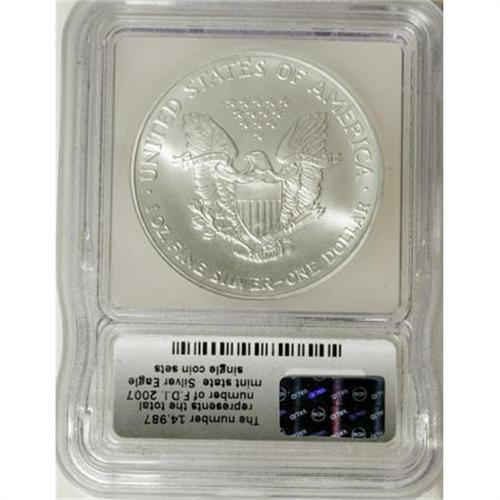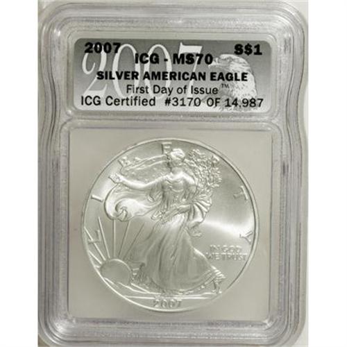 (2)2007 S$1 Silver American Eagle MS70 ICG. First Day