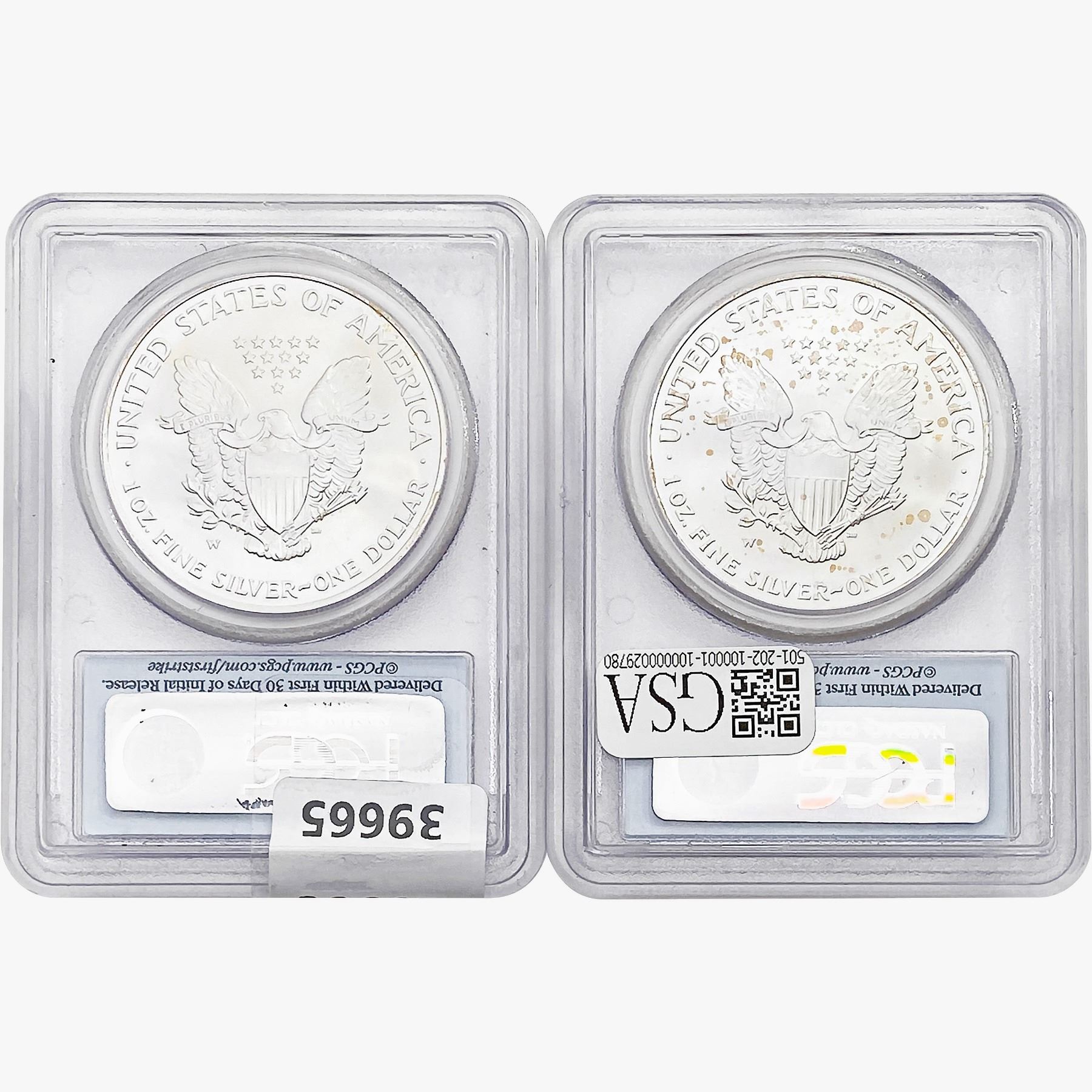 COINS AND CURRENCY LISTED IN GSA’S CATALOG AS GRADED AND ENCAPSULATED BY PCGS, NGC, ANACS, ICG, PCGS CURRENCY, PMG, PCGS BANKNOTE GRADING, CMC OR ANY OTHER THIRD-PARTY GRADING SERVICE ARE LIKEWISE SOLD “AS-IS” EXCEPT AS EXPRESSLY SET FORTH HEREIN. ALL THIRD-PARTY GRADING SERVICE GUARANTEES, INCLUDING AUTHENTICITY, ARE THE SOLE RESPONSIBILITY OF THE THIRD-PARTY GRADING SERVICE AND NOT WARRANTIES OR GUARANTEES OF GSA. BIDDERS SHOULD CONTACT THESE THIRD-PARTY GRADING SERVICES DIRECTLY WITH RESPECT TO ANY CLAIMS OR QUESTIONS THEY MAY HAVE CONCERNING THEIR GUARANTEES AND WARRANTIES. BIDDERS ACKNOWLEDGE AND AGREE THAT AUCTIONEER IS NOT BOUND BY OR LIABLE FOR ANY OPINION OR CERTIFICATION BY ANY THIRD-PARTY GRADING SERVICE. REMOVAL OF A PRODUCT FROM ITS PROTECTIVE CASING OR HOLDER OR ALTERATION OF ANY COIN HOLDER WAIVES ALL RIGHTS CONCERNING THE PRODUCT CONTAINED THEREIN.