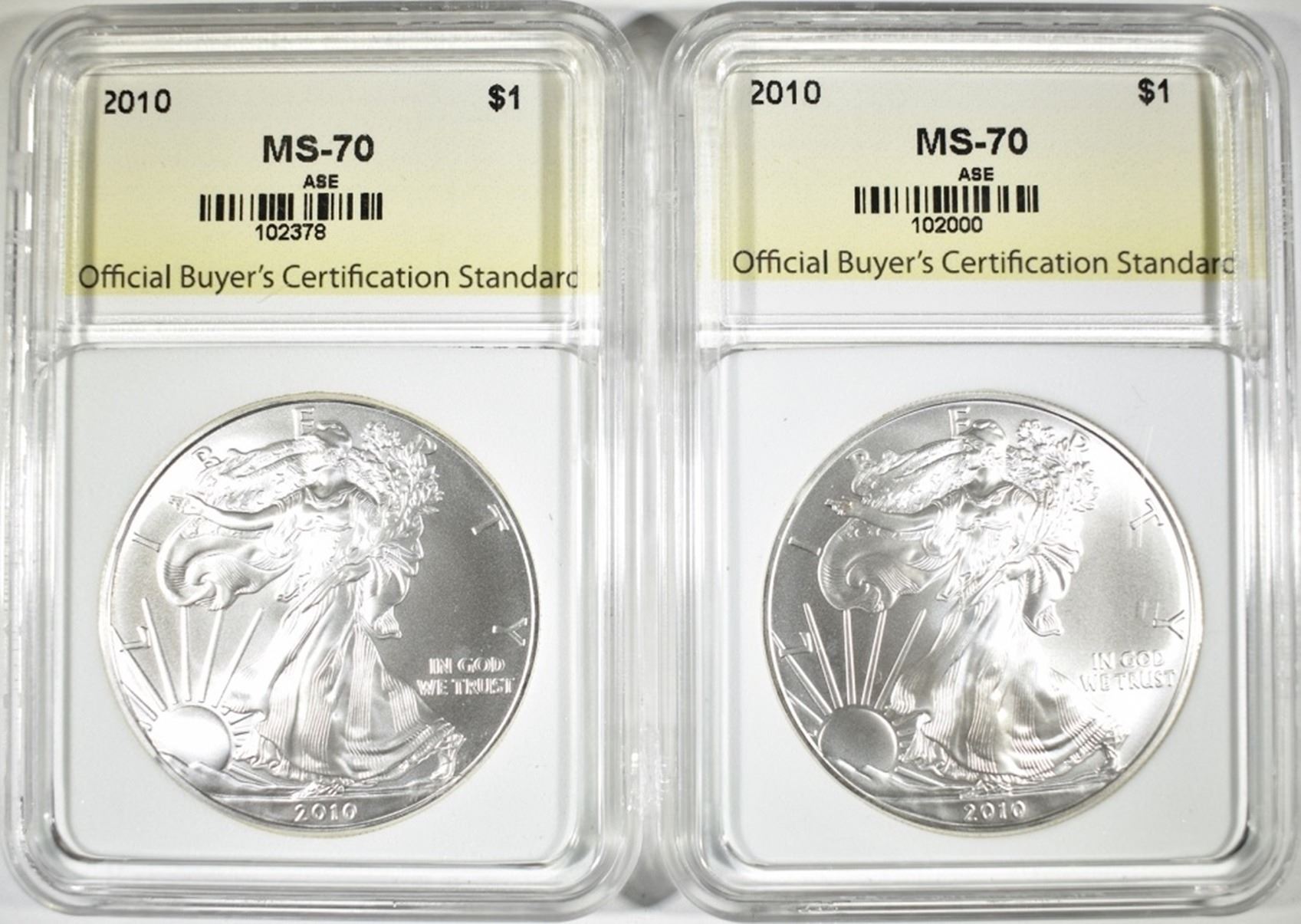 2-2010 AMERICAN SILVER EAGLES, OBCS PERFECT GEM BU