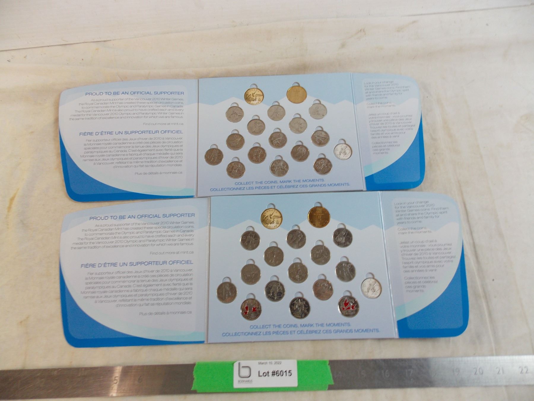 (2) 2010 Olympic sets - missing 1 loonie + 1 quarter each