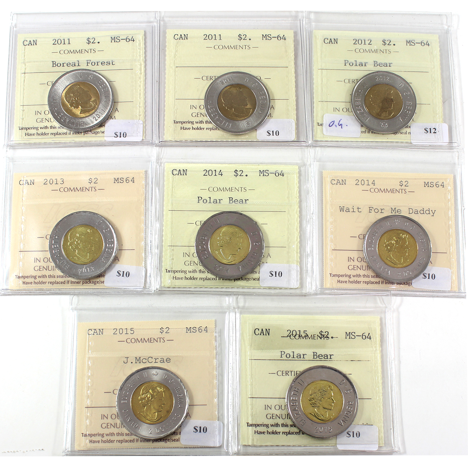 $2 2011 Boreal Forest, 2011, 2012, 2013, 2014, 2014 Wait For Me Daddy, 2015 McCrae & 2015 ICCS MS64