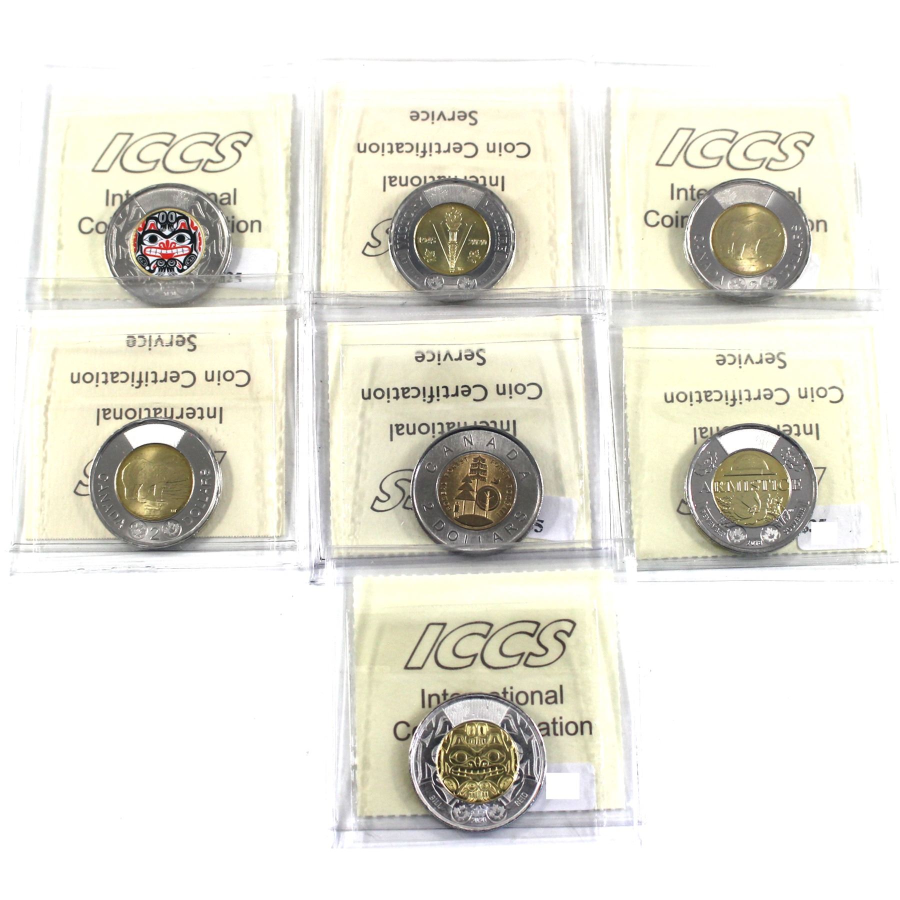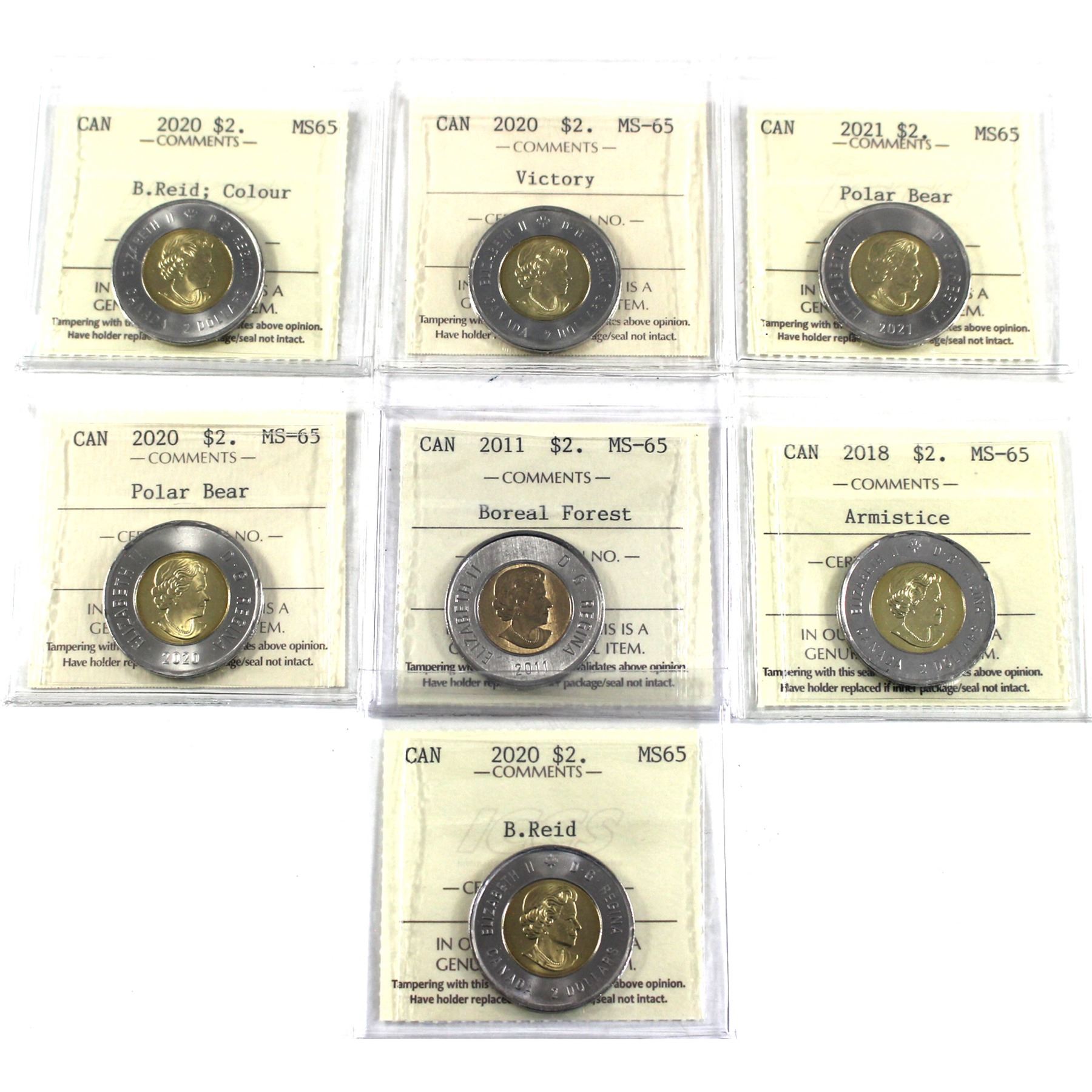 $2 2011 Boreal Forest, 2018 Armistice, 2020, 2020 Bill Reid, 2020 Bill Reid Coloured, 2020 Victory & 2021 ICCS Certified MS-65. 7pcs
