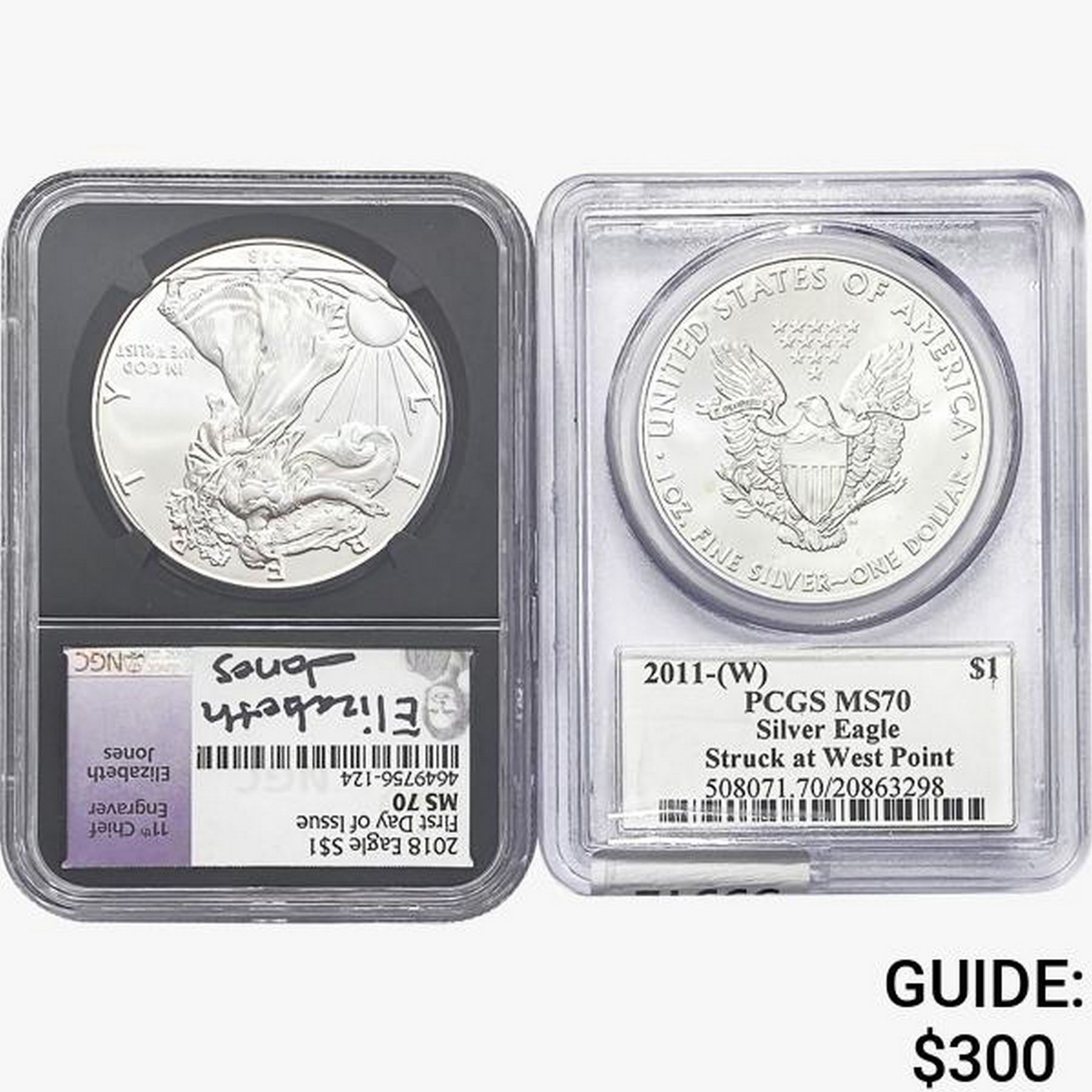 [2] 2011-W&2018 Silver Eagle NGC/PCGS MS70