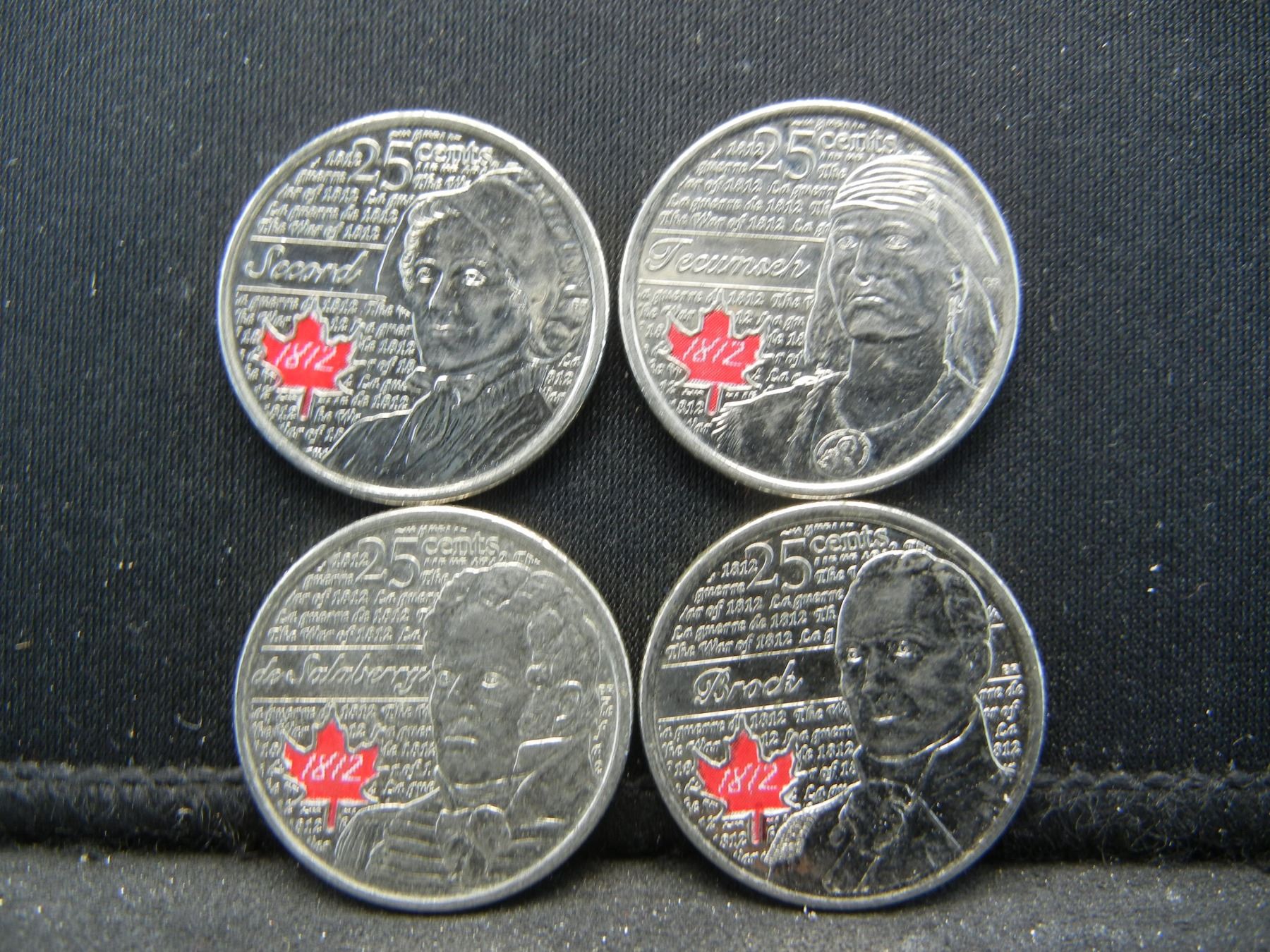 (2) 2012 & (2) 2013 Quarter from Canada "War of 1812" All Different