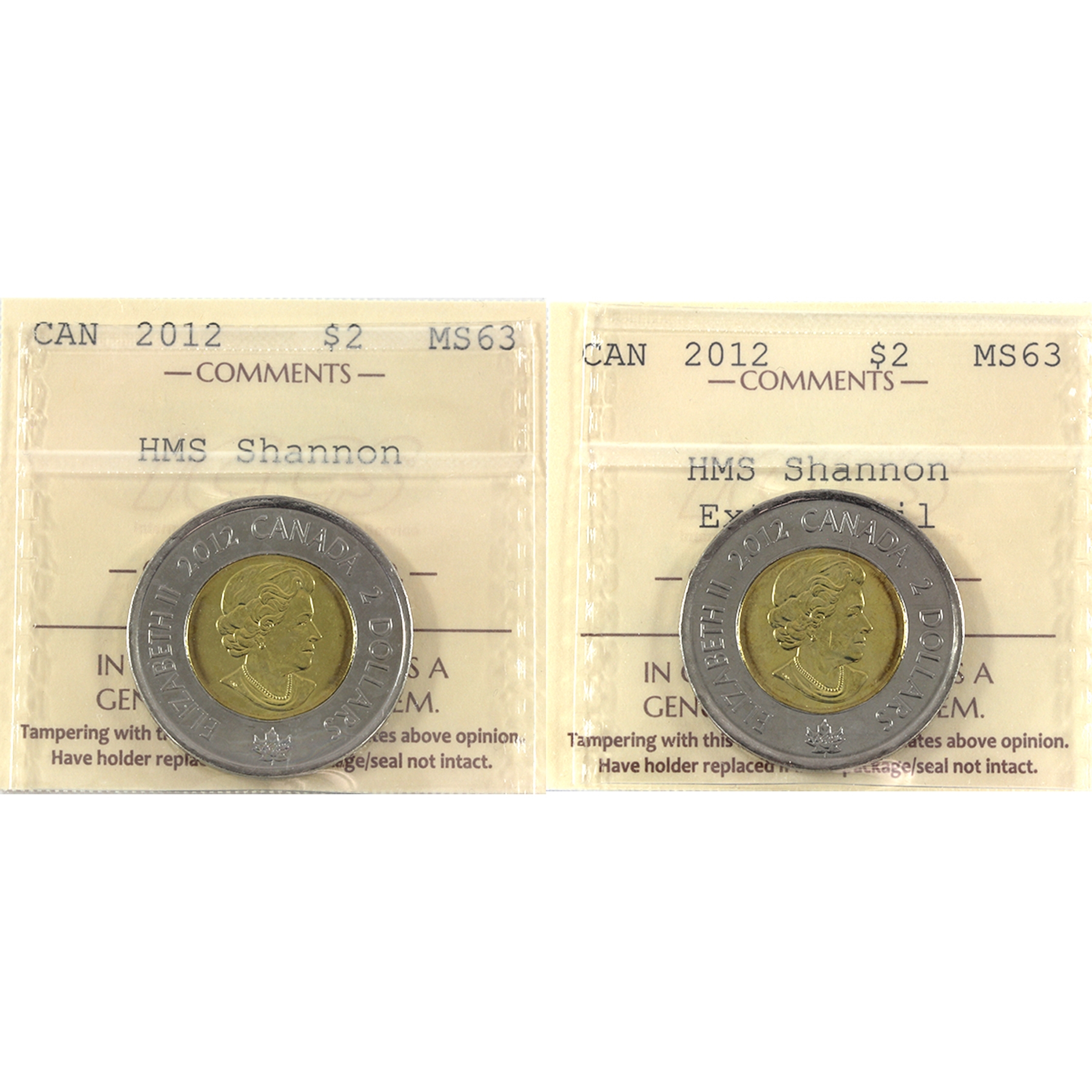 $2 2012 HMS Shannon & HMS Shannon Extra Sail ICCS MS63. 2pcs.
