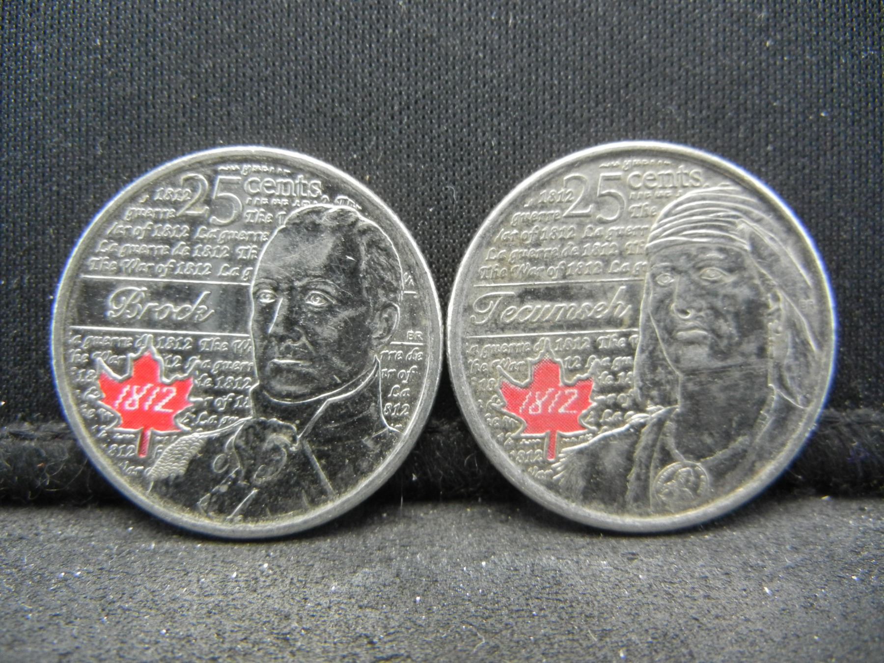 (2) 2012 Quarter from Canada "War of 1812 One Featuring Brock & One Featuring Tecumseh"