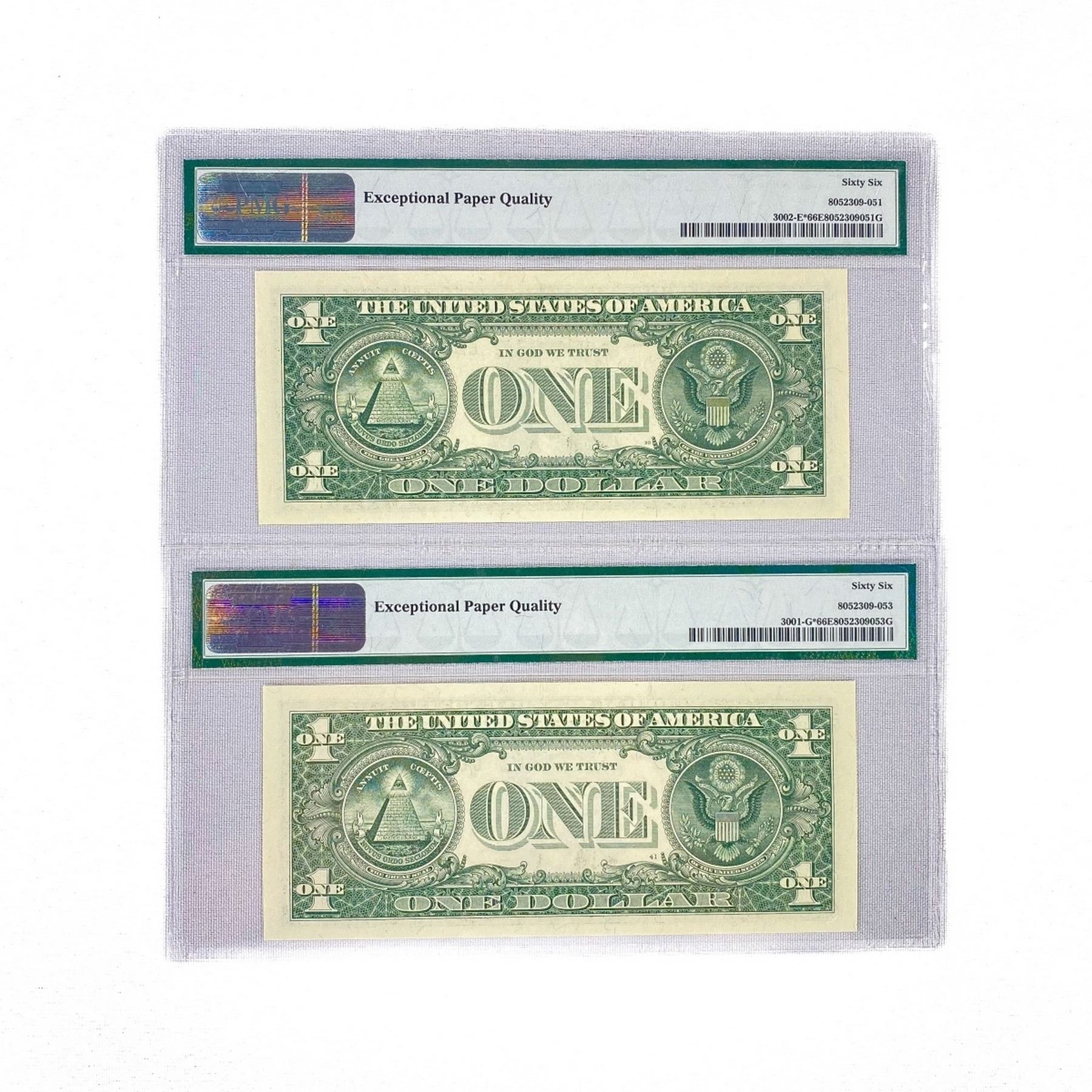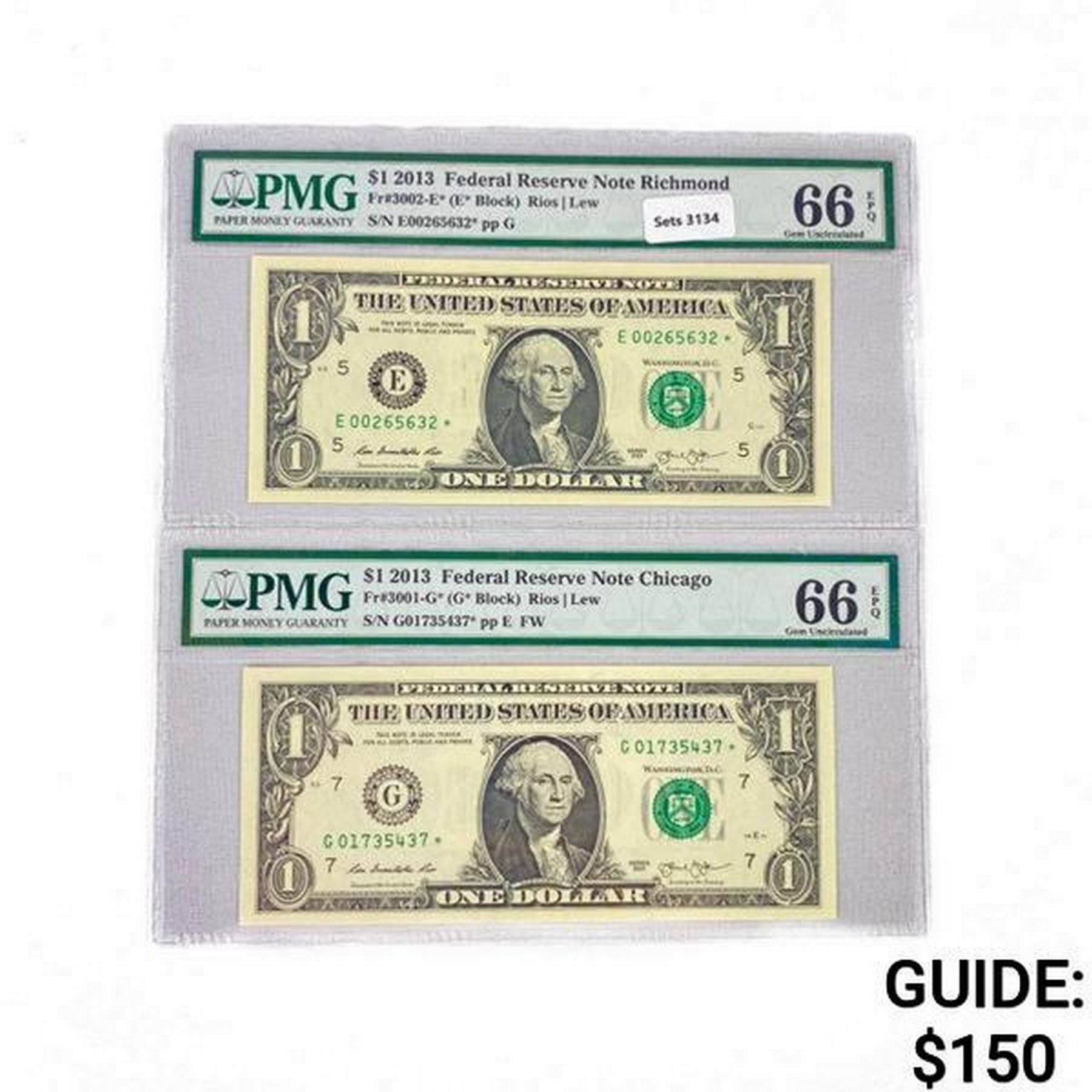 (2) 2013 Star $1 Fed Reserve Notes PMG GEM UNC 66